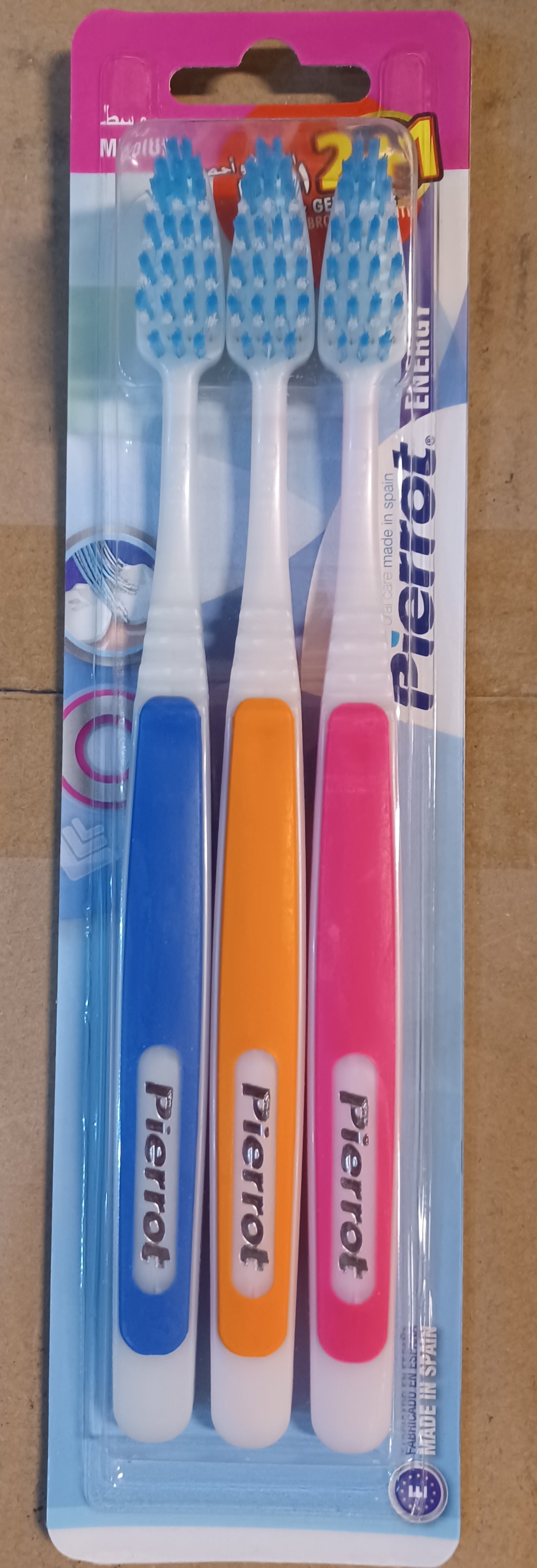 3 × Pierrot Energy Medium Dure Toothbrushes (Medium Bristles)