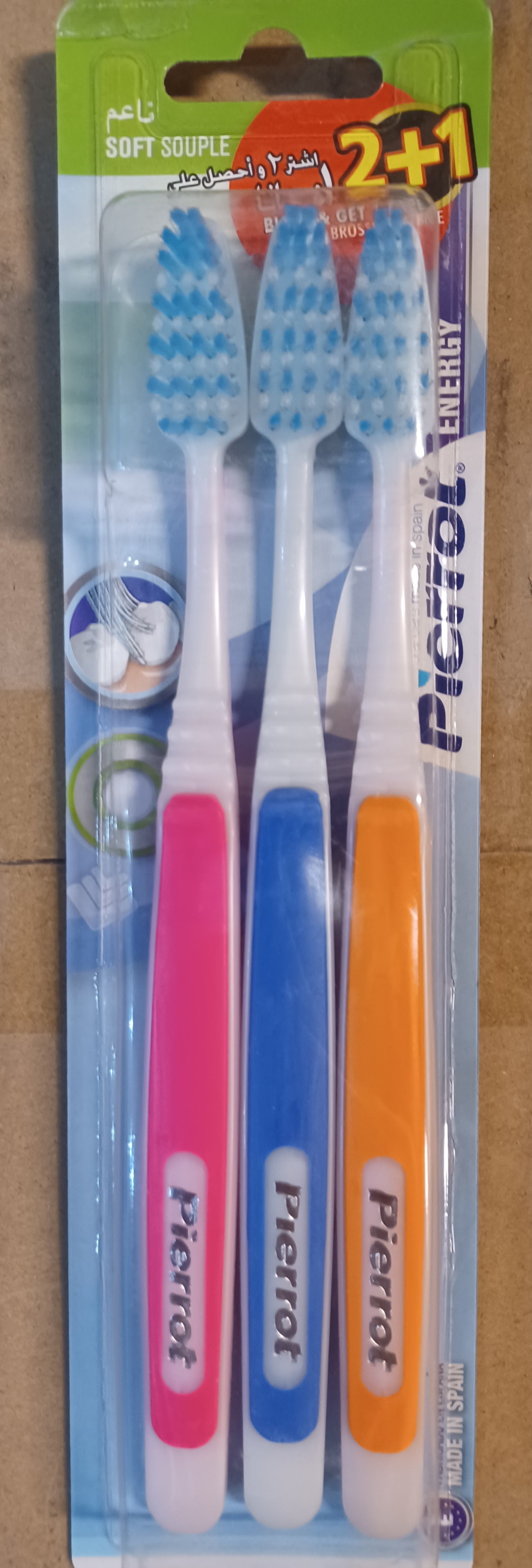 3 × Pierrot Energy Soft Souple Toothbrushes (Soft Bristles)