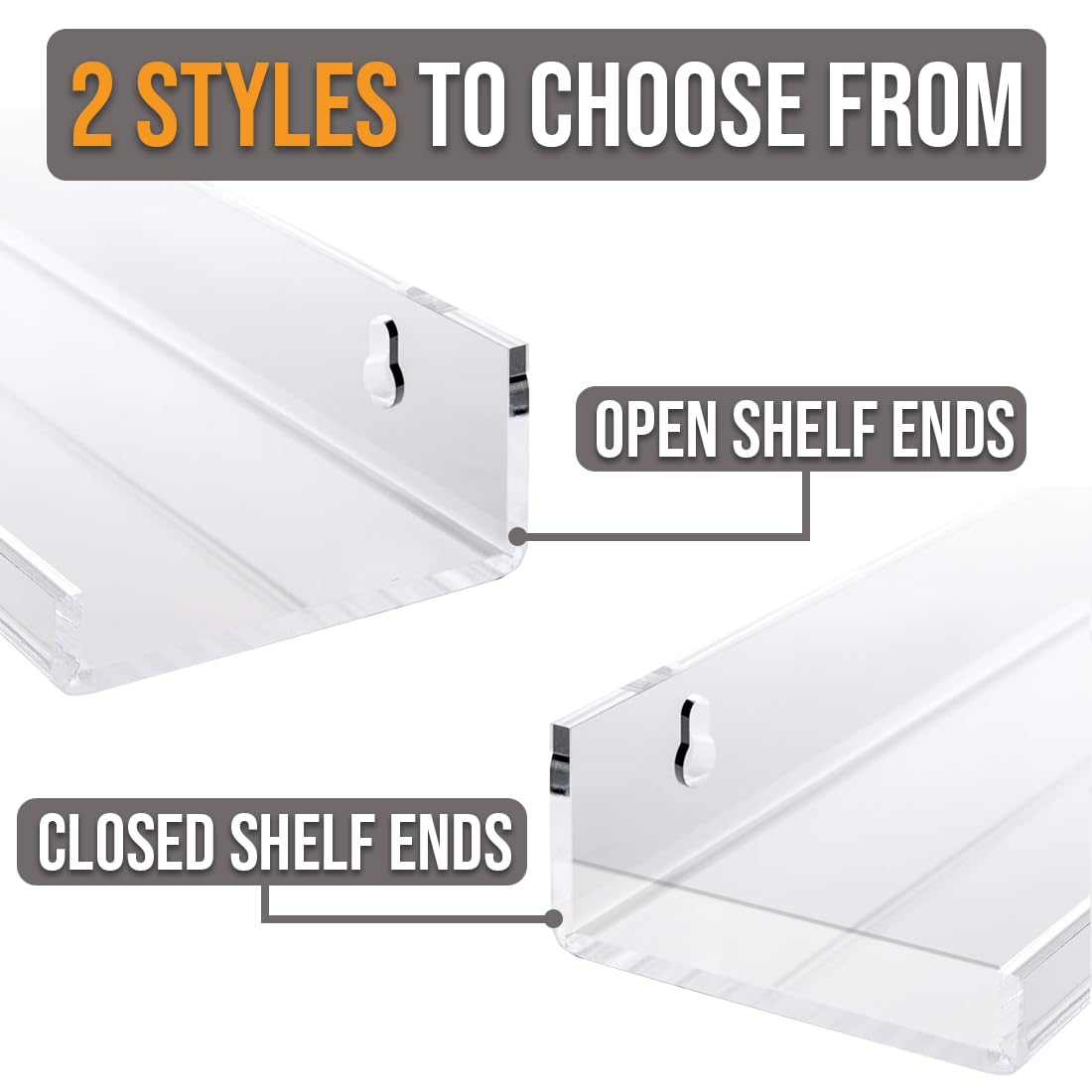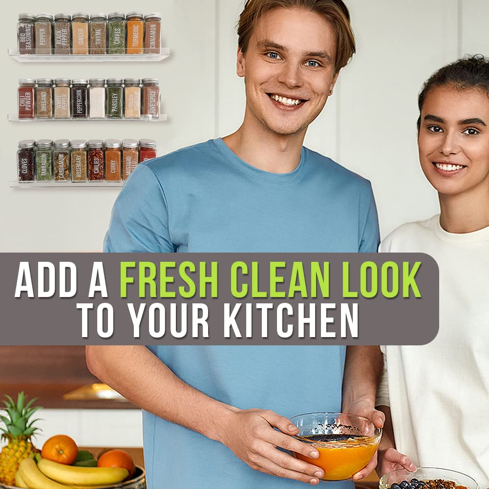 Pretty Display Wall Mounted Spice Rack Shelves [3-Pack] - Clear