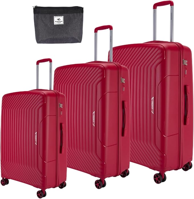 Prince Luggage Set of 3 Unbreakable Luggage with 4 Spinner Wheels, Luggage for Travel Light Weight Anti-Theft Lock,Size 20 24 28 Inch Red
