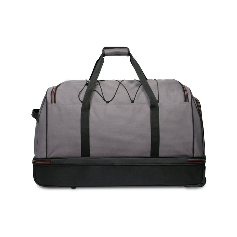 Protege Rolling Drop-Bottom Duffel Bag for Travel, 30 in, Black and Grey