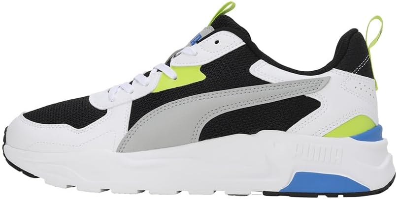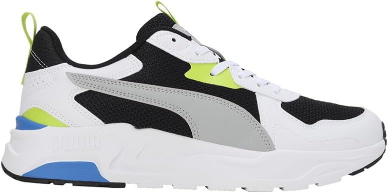 Step up your sneaker game with the Trinity Lite PUMA in Black, Cool Light Gray, and White. Inspired by classic running shoes, these sneakers bring a fusion of modern comfort and retro aesthetics. Designed with a breathable mesh upper and durable synthetic overlays, they provide both flexibility and support. The SoftFoam+ sockliner delivers superior underfoot cushioning with an extra-thick heel for maximum comfort. A lightweight IMEVA midsole ensures responsive cushioning, while rubber nubs on the outsole enhance traction and durability. Finished with the iconic PUMA Formstrip on both sides and the PUMA Cat Logo on the heel, these lace-up sneakers are perfect for casual wear, combining style and functionality effortlessly.