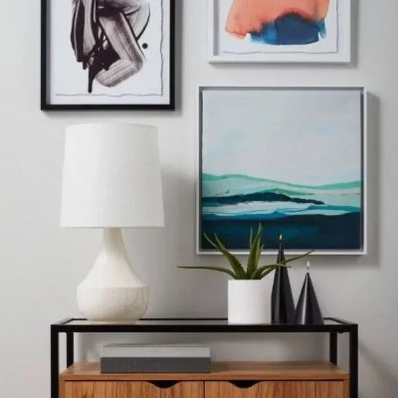 Bold style and practicality come together in this Montreal Wren Assembled Table Lamp from Project 62. This white-on-white ceramic table lamp comes with a fabric-blend lampshade so that the light cast in your room appears bright and beautiful. Plus, the three-way rotary switch lets you adjust the level of light output depending on the lighting needs of your unique space.