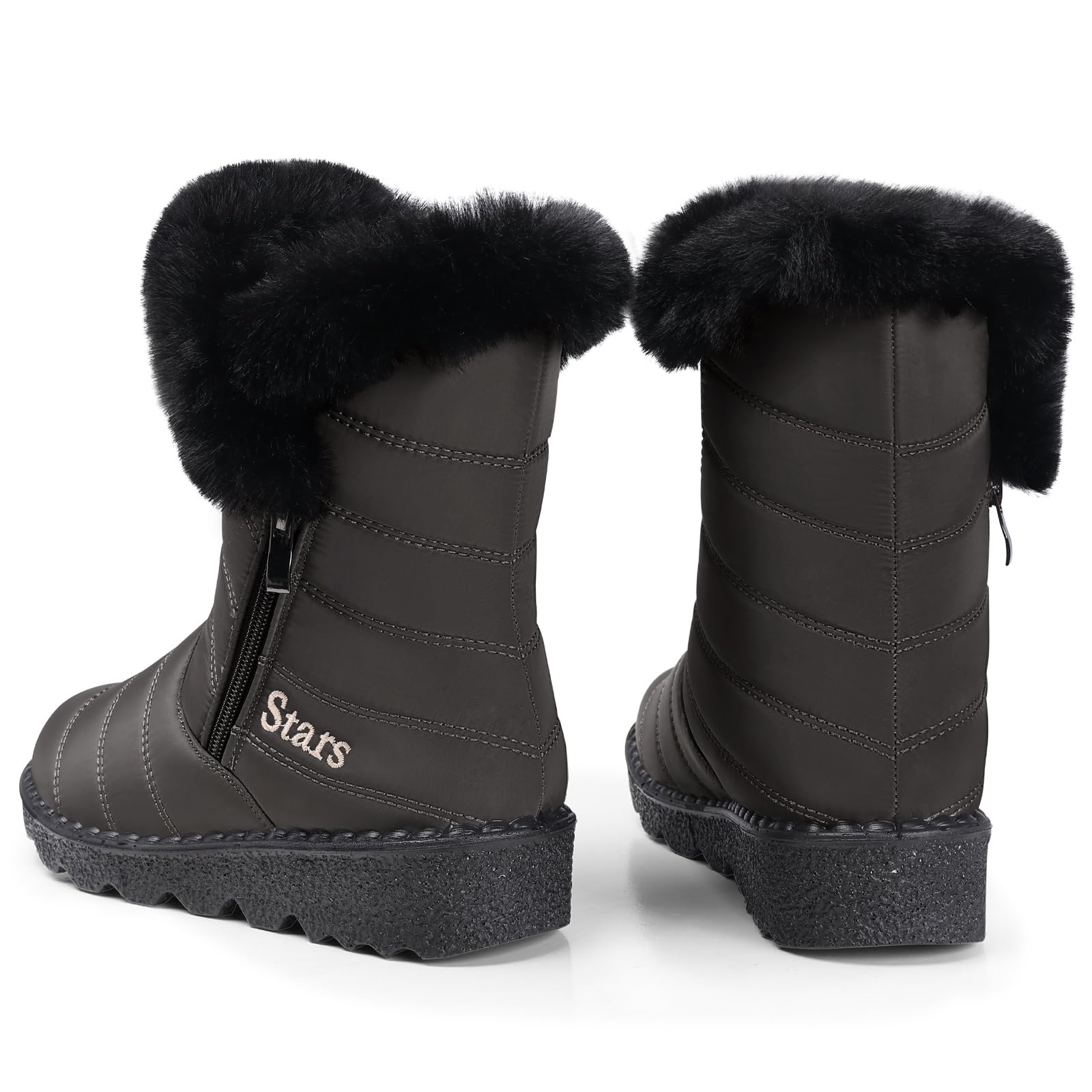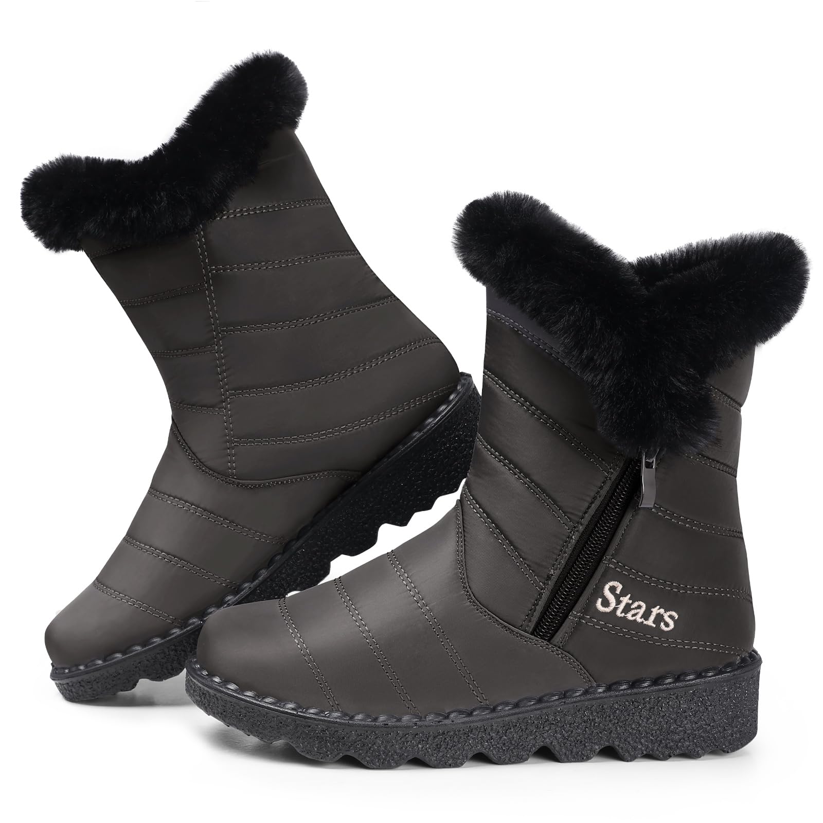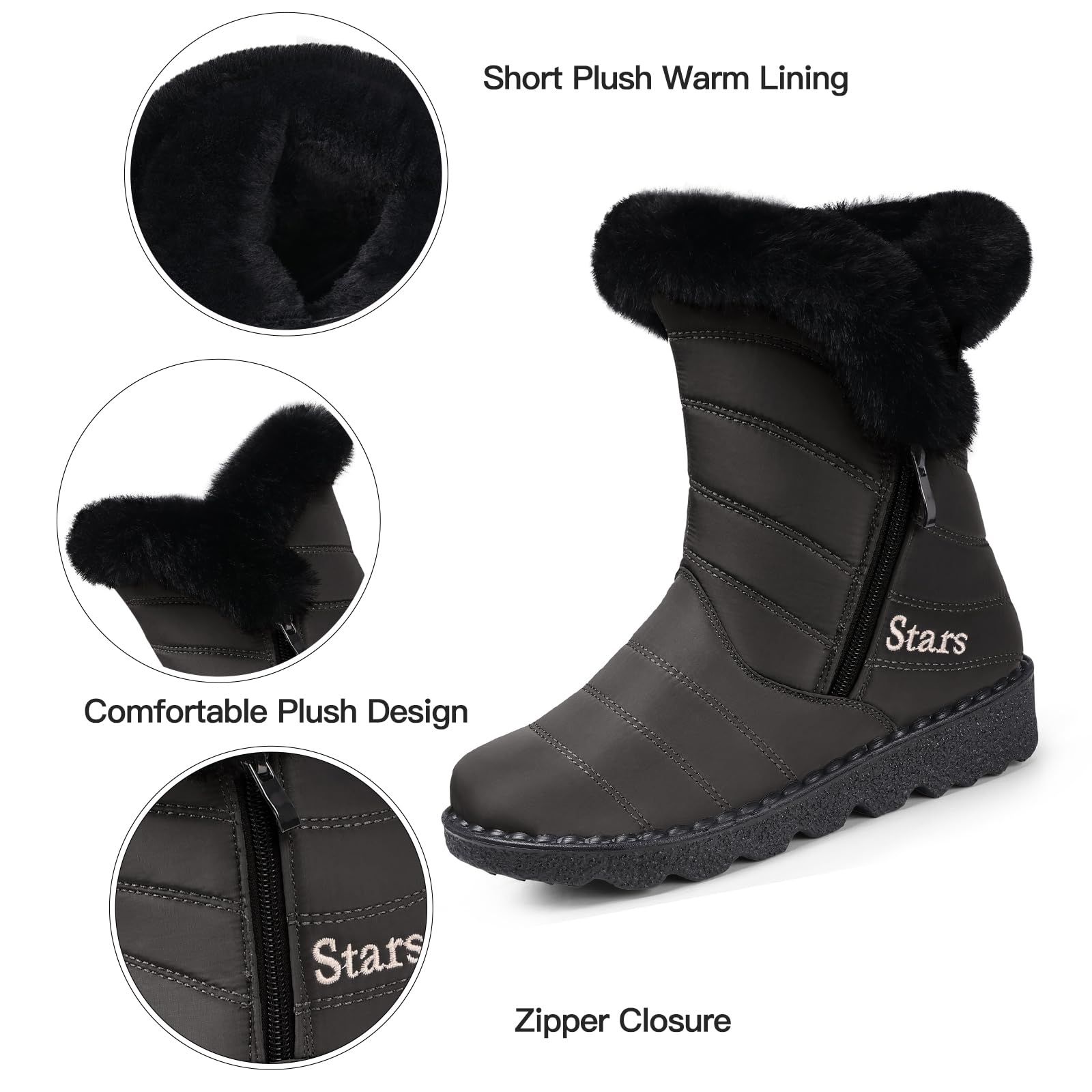 SIZE: 36 - SHIBEVER Waterproof Winter Boots for Women: Snow Mid Calf Fur Lined Warm Women Boot Outdoor Resistant Short Fashion Booties