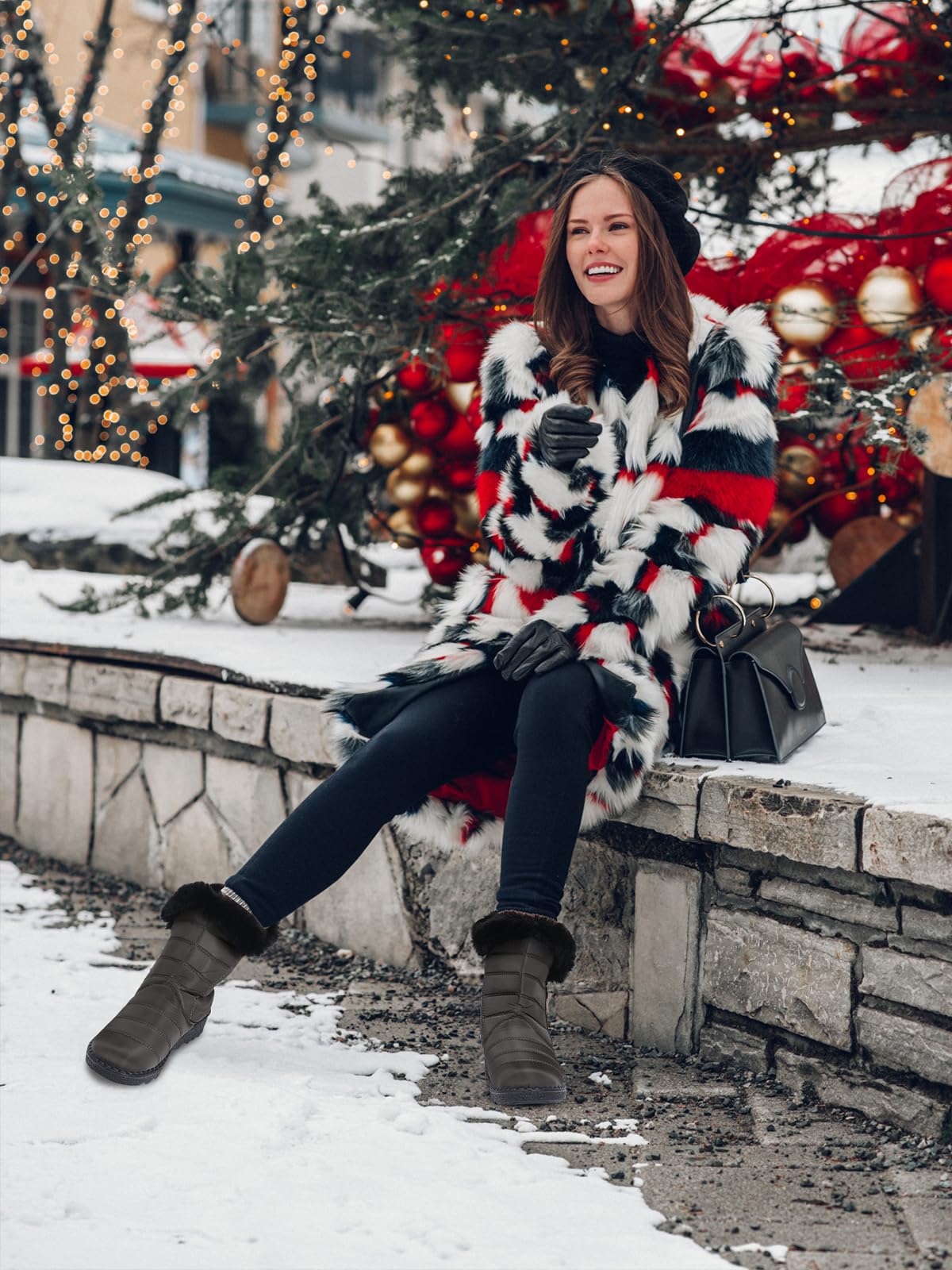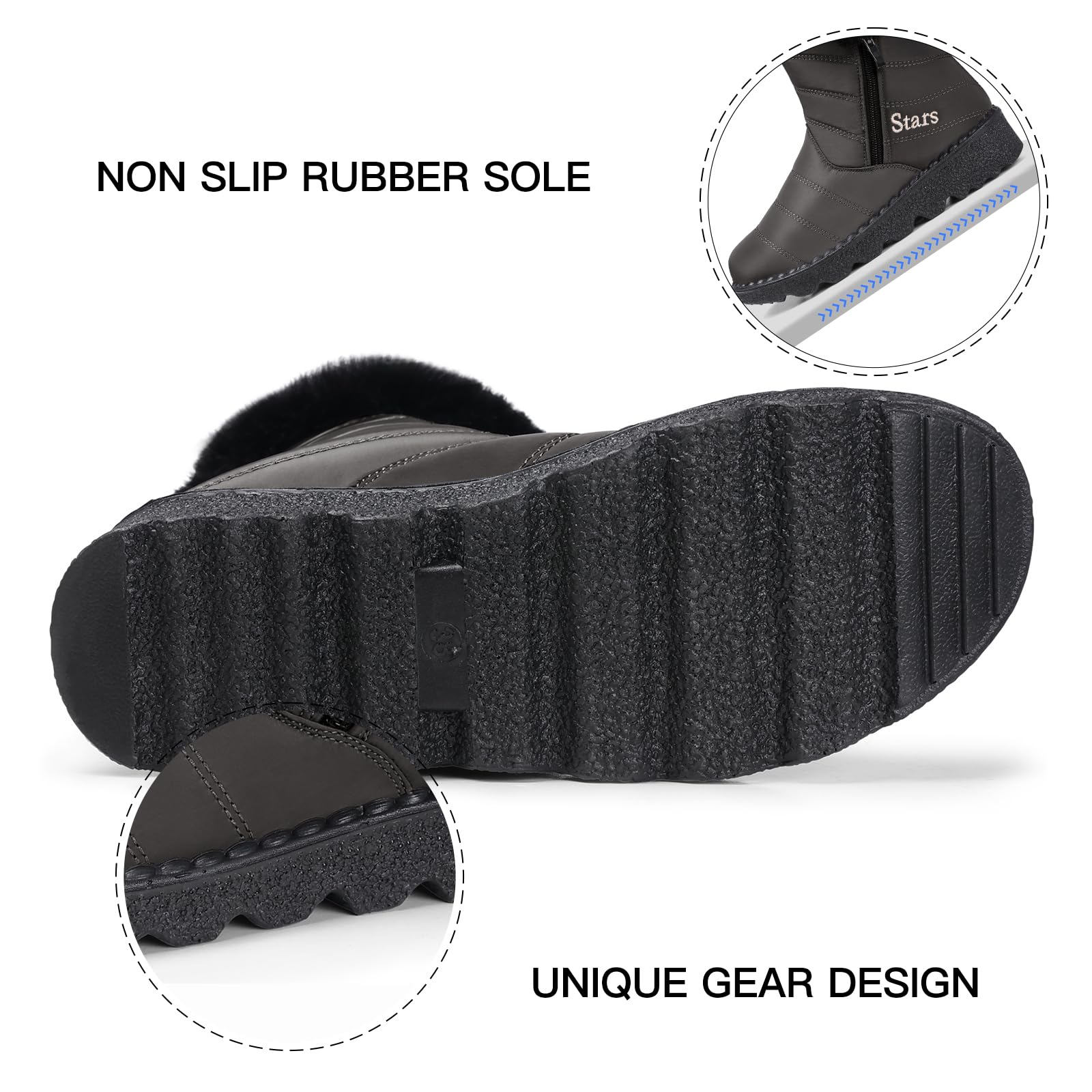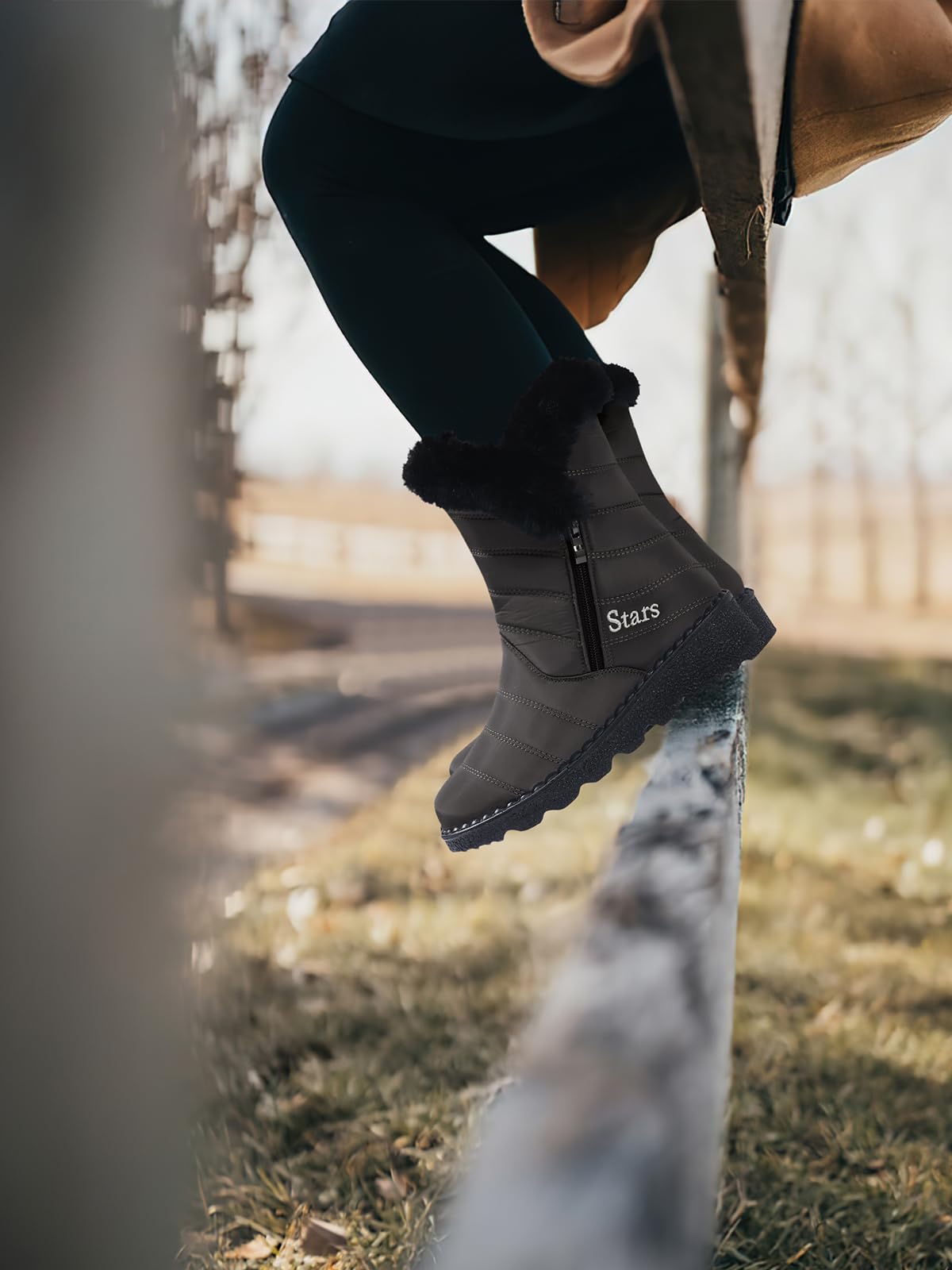 SIZE: 36 - SHIBEVER Waterproof Winter Boots for Women: Snow Mid Calf Fur Lined Warm Women Boot Outdoor Resistant Short Fashion Booties