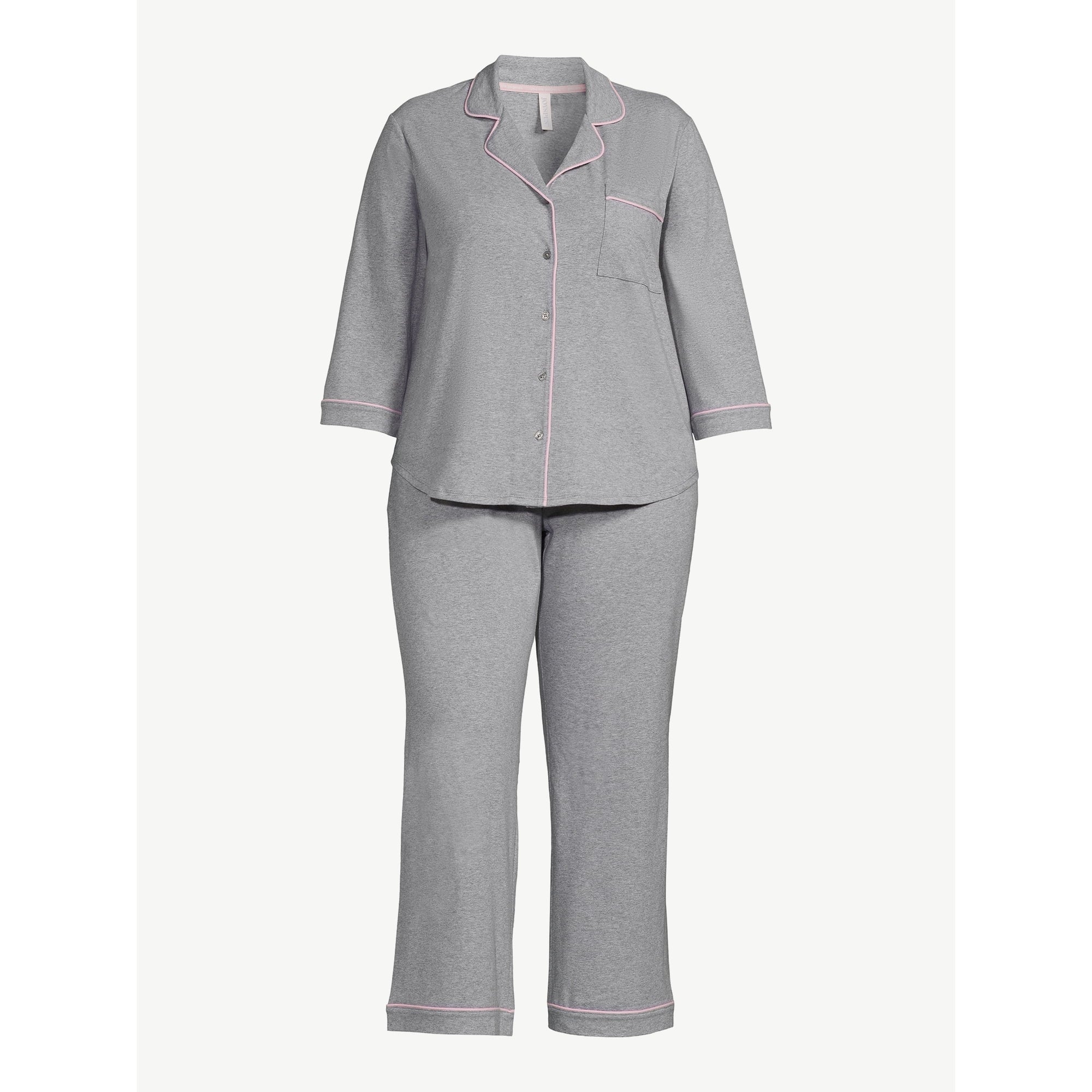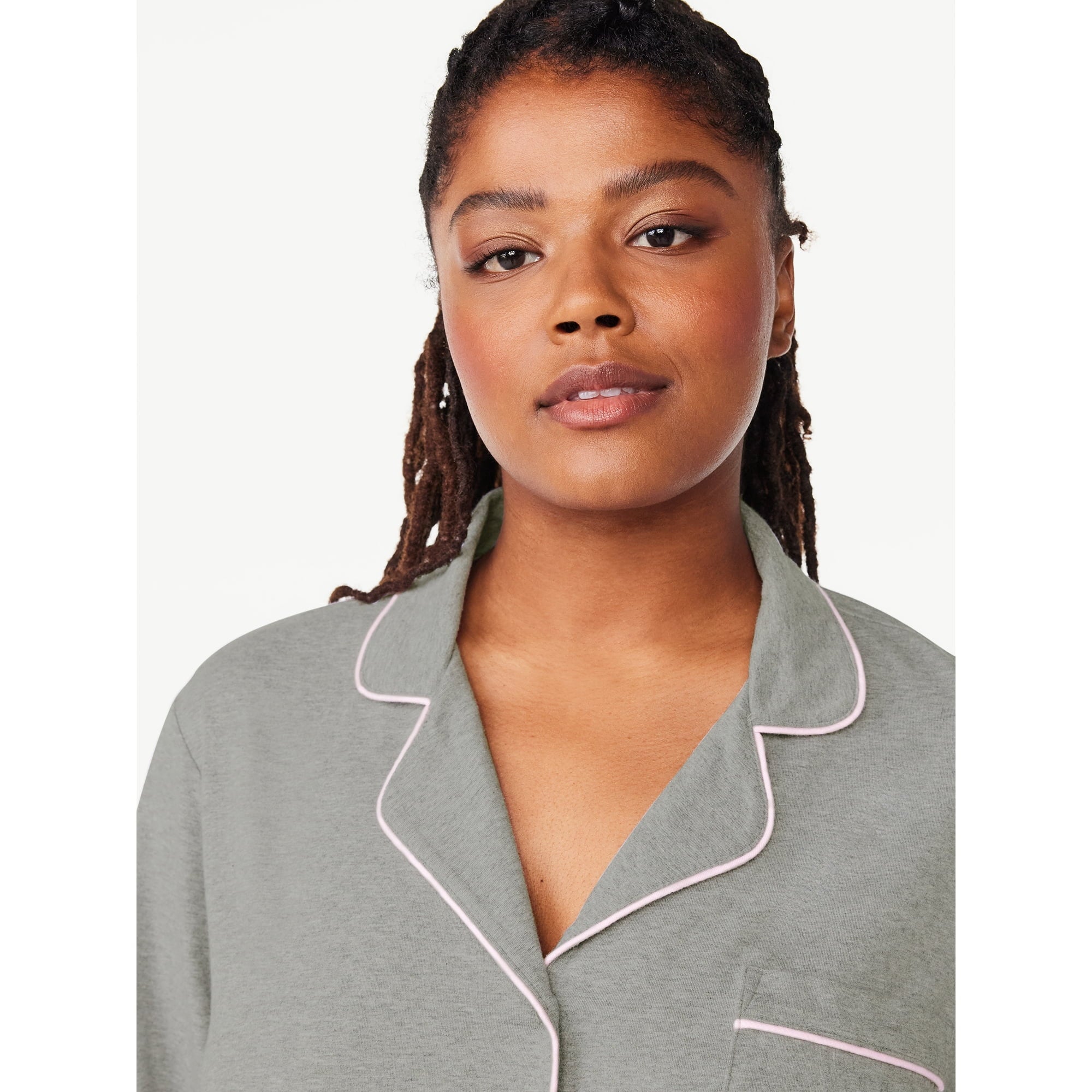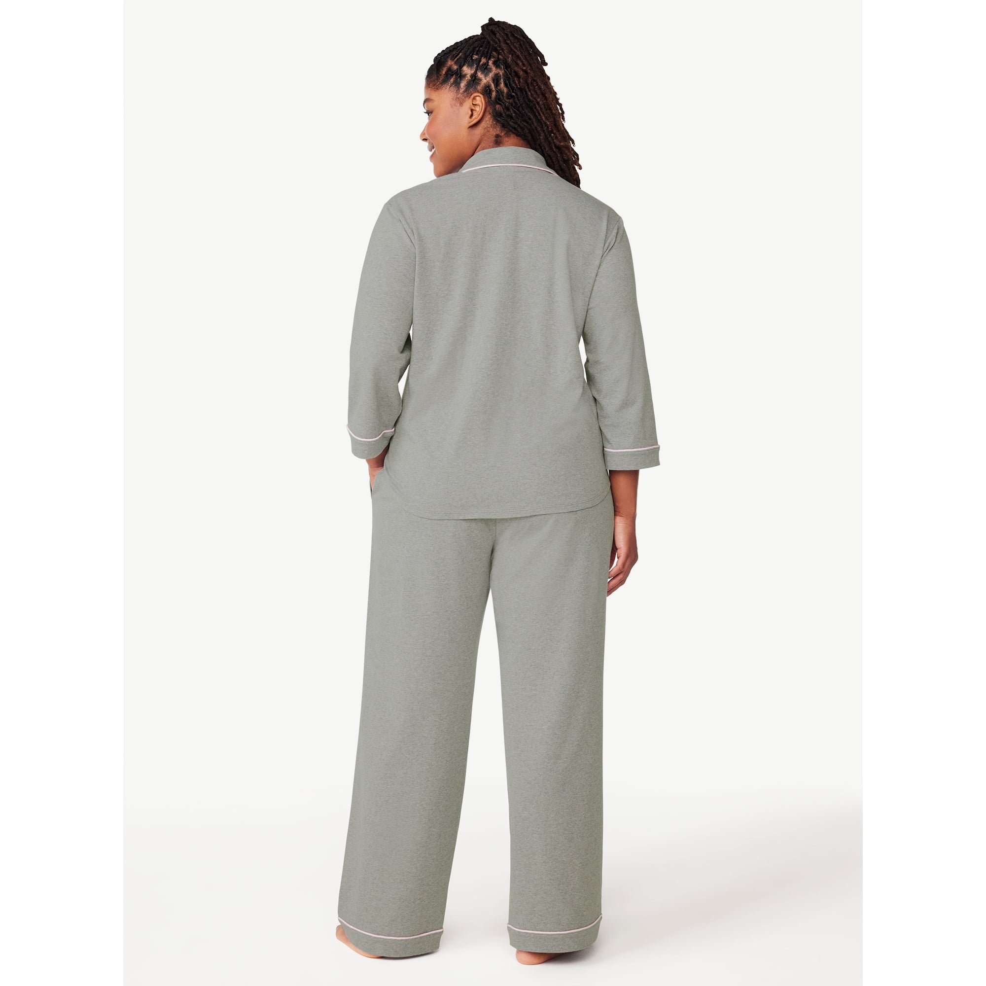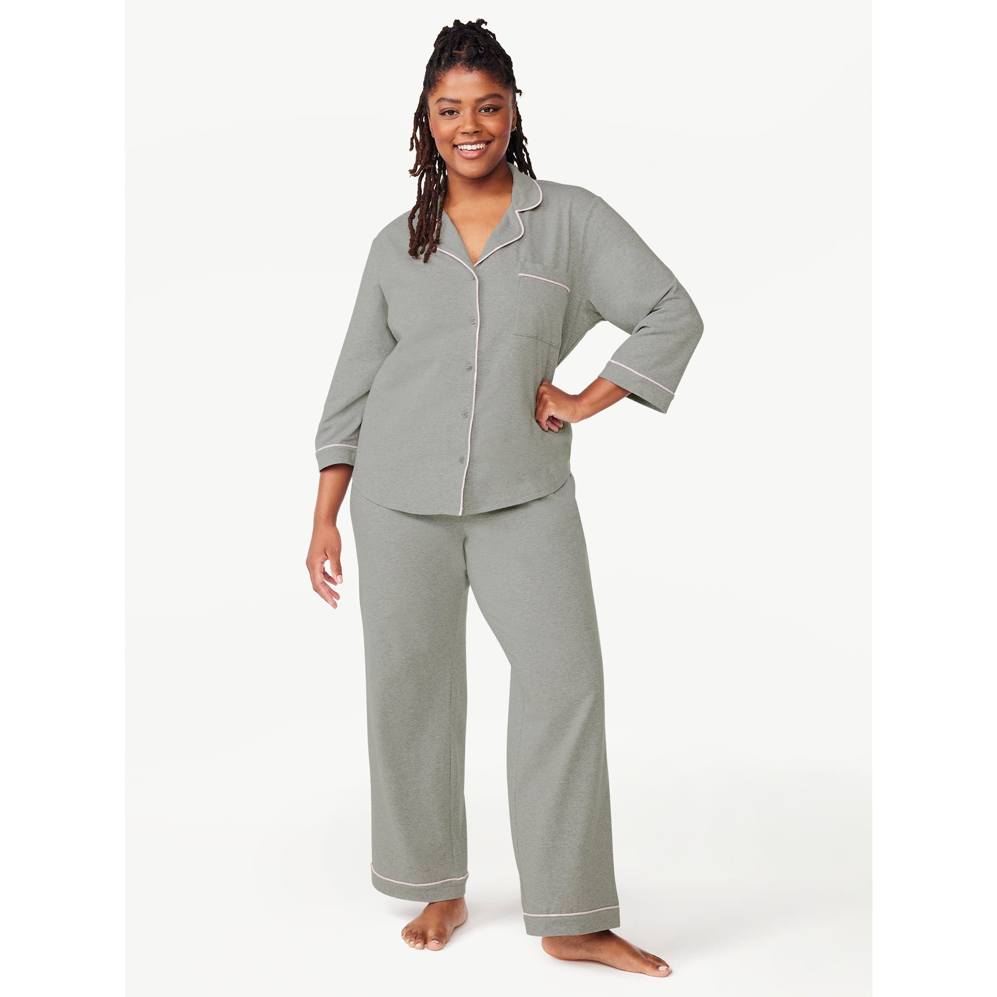 SIZE: 4X(26W-28W) - Joyspun Women’s Cotton Blend Notch Collar Top and Pants Pajama Set, 2-Piece,