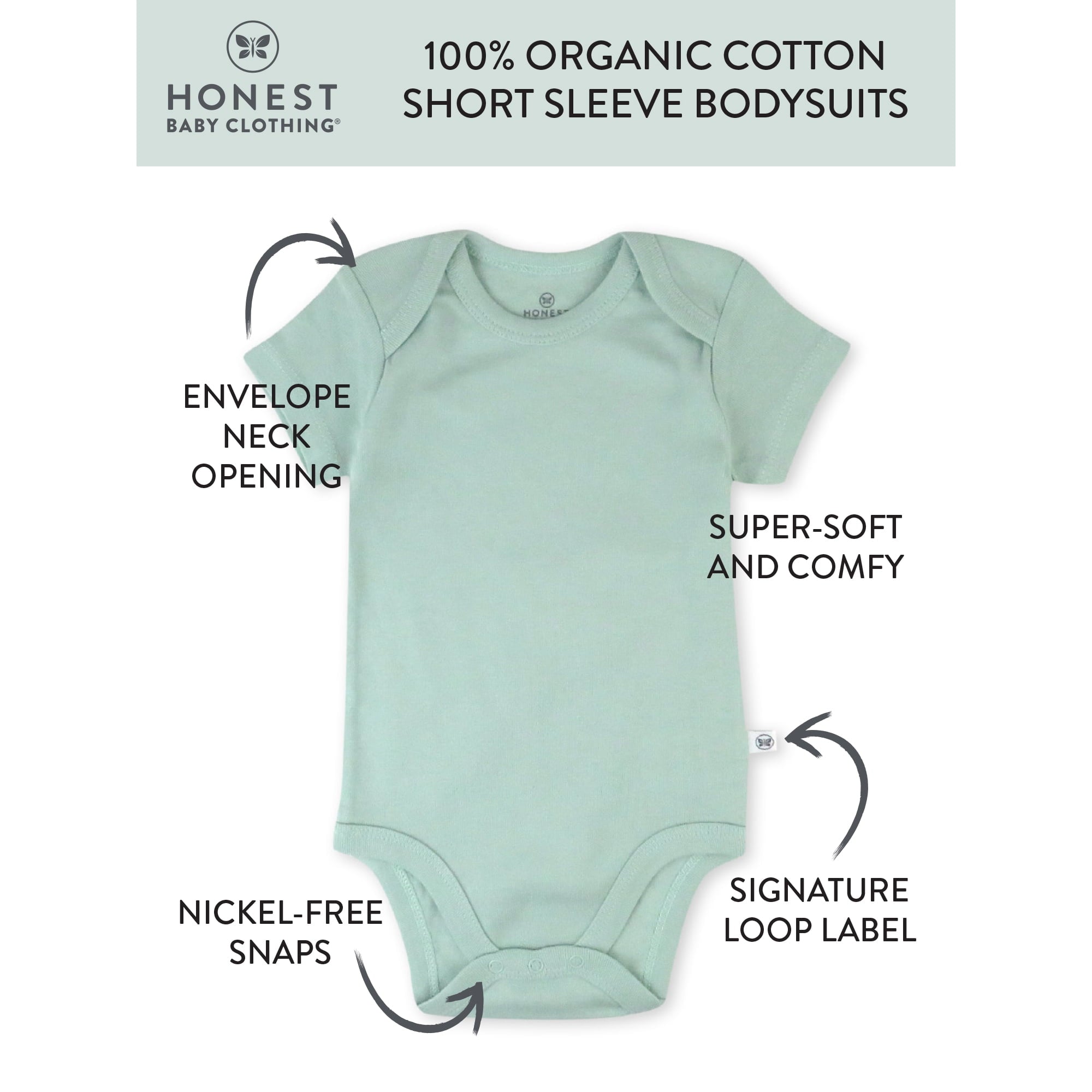 SIZE: 6M - Honest Baby Clothing Baby Boy or Girl Gender Neutral Organic Cotton Short Sleeve Bodysuits, 3 Pack