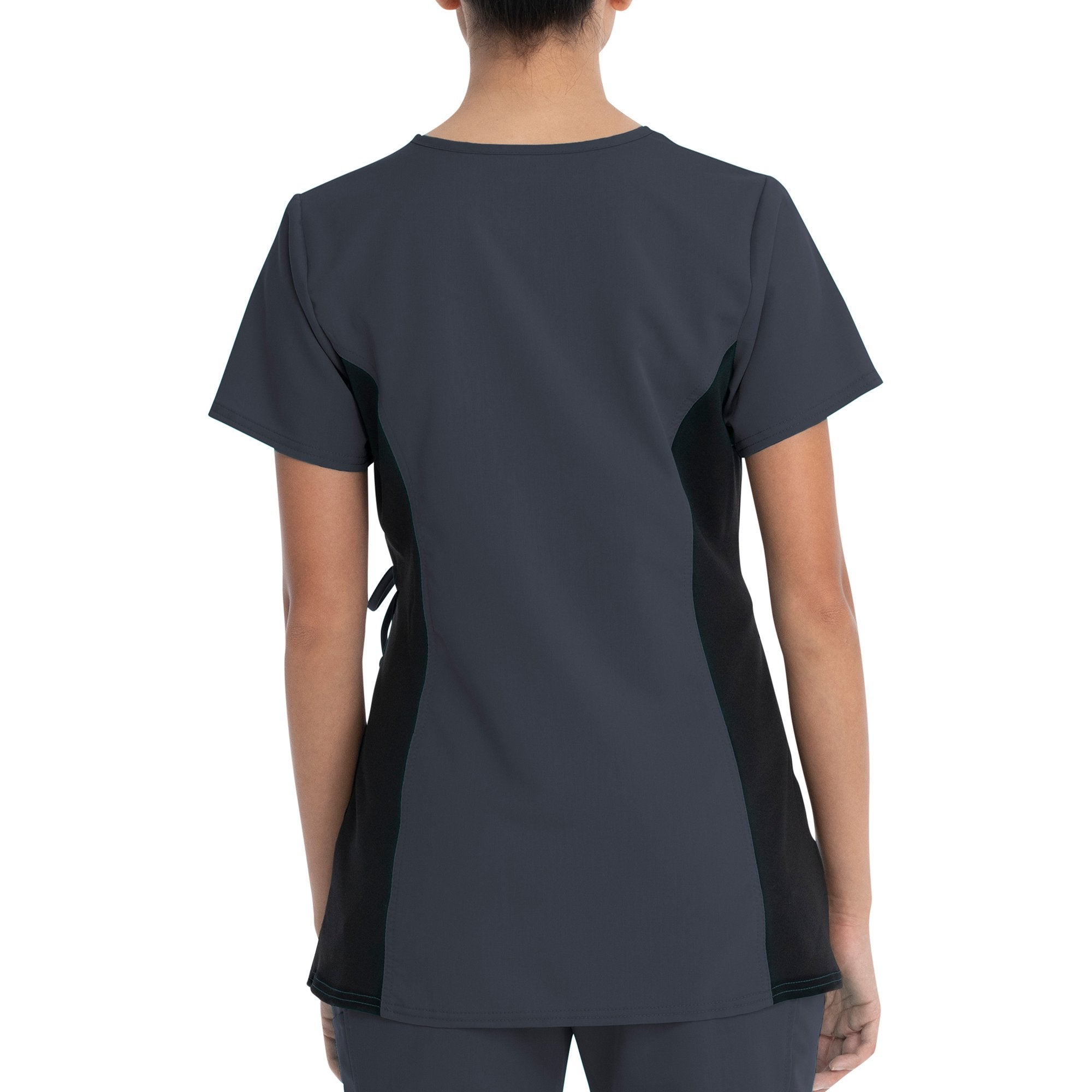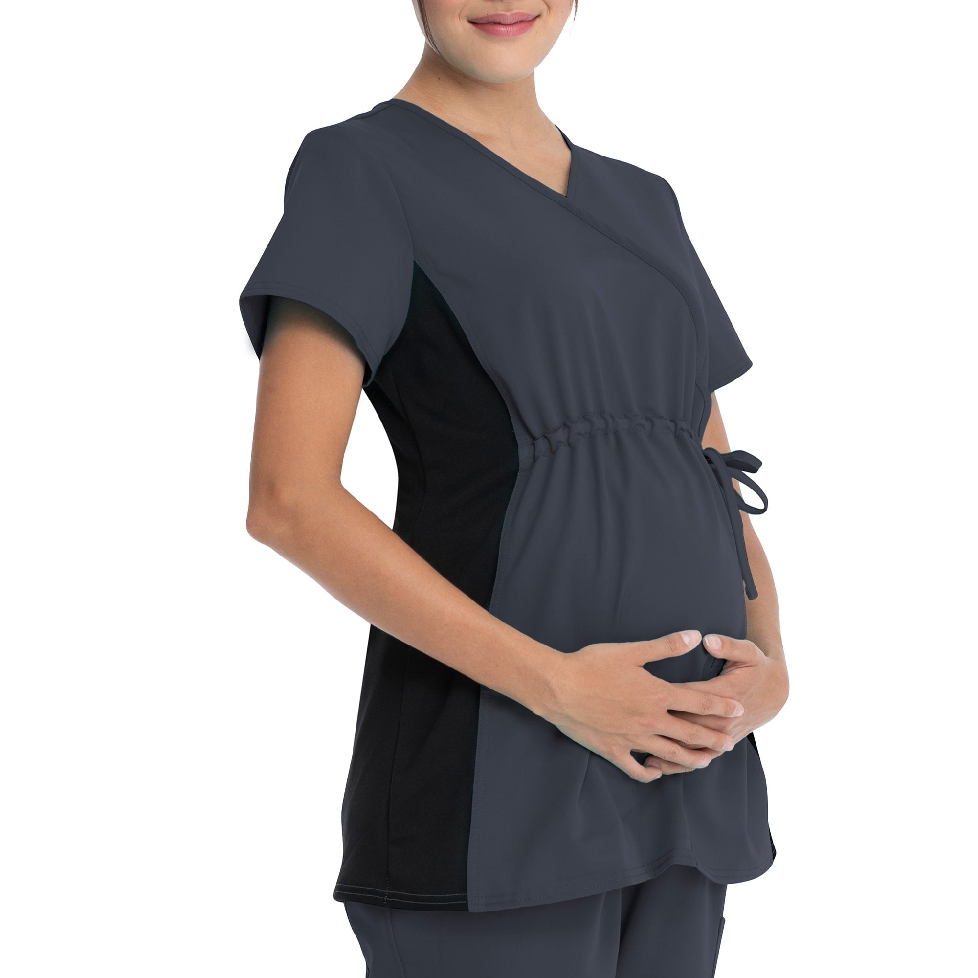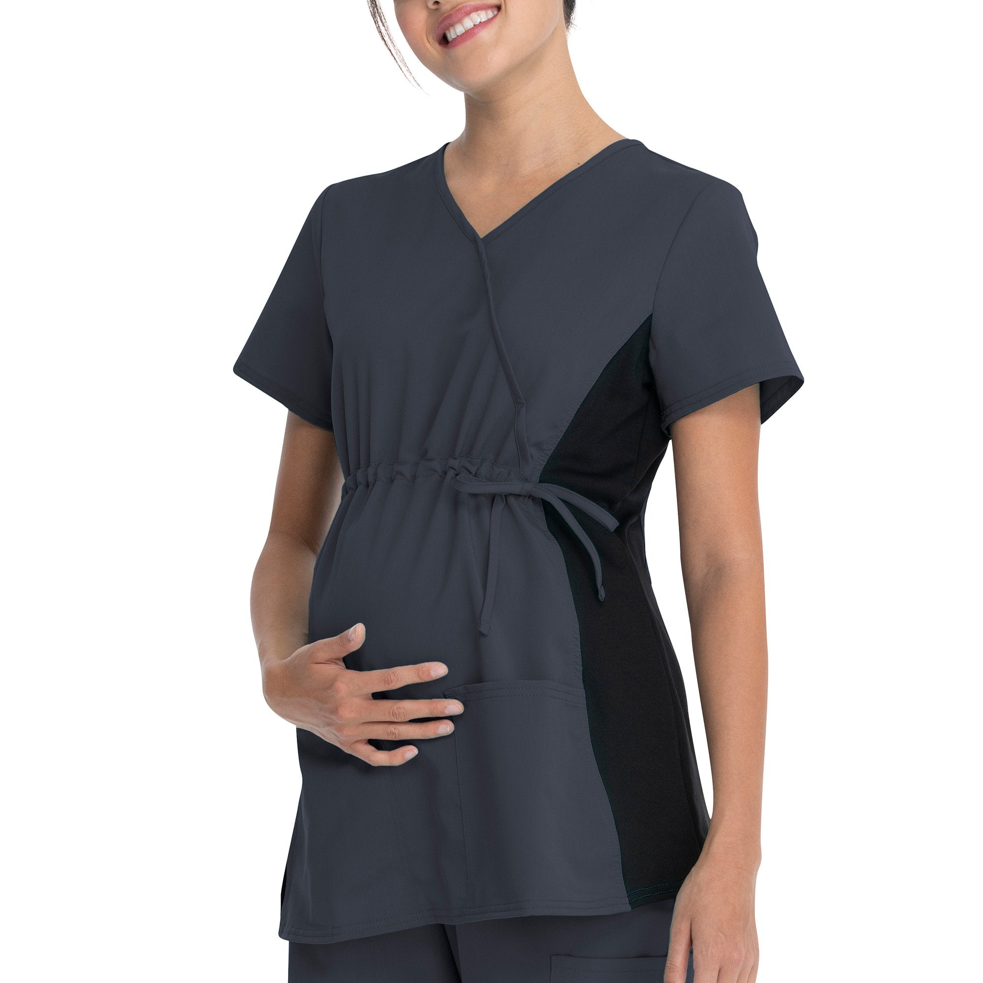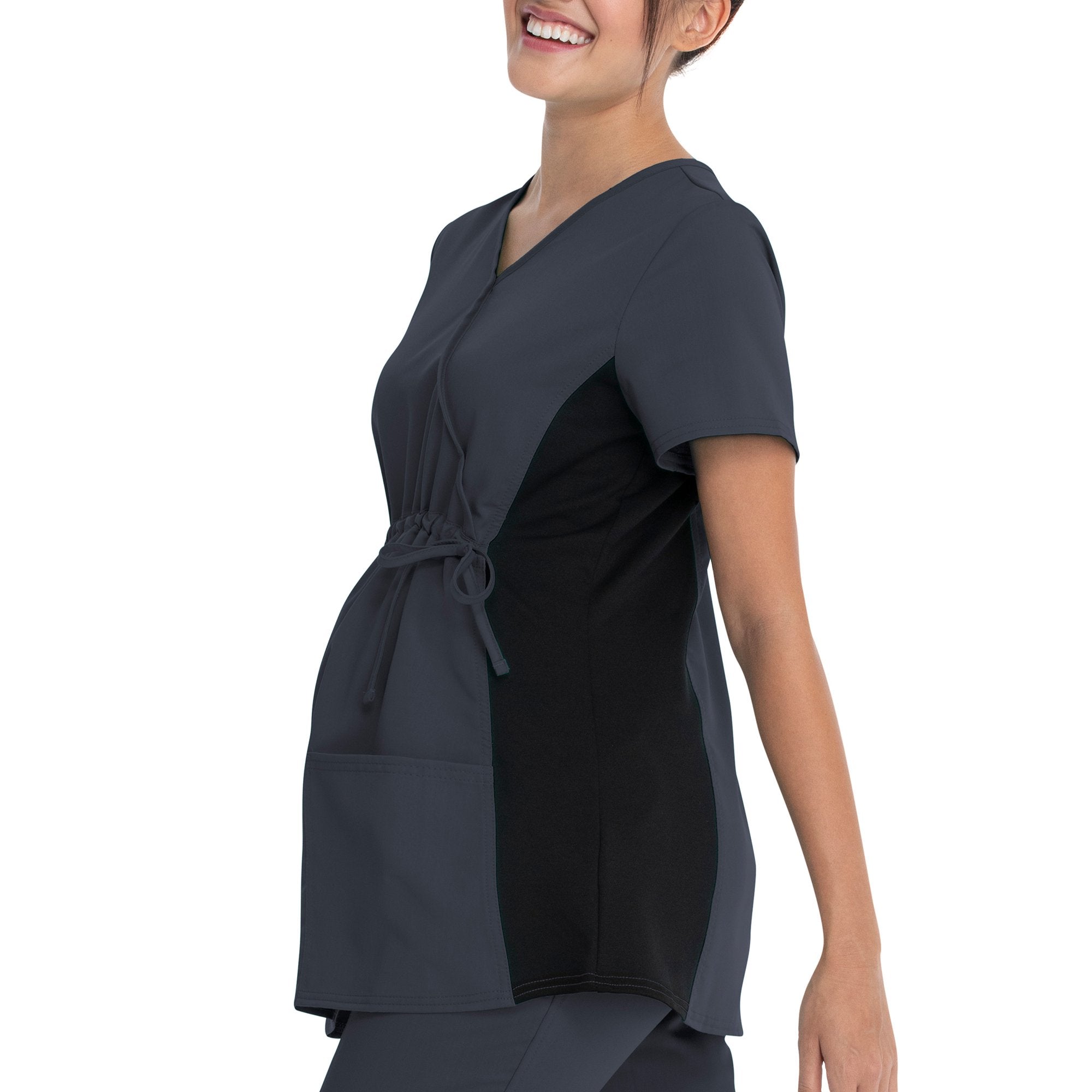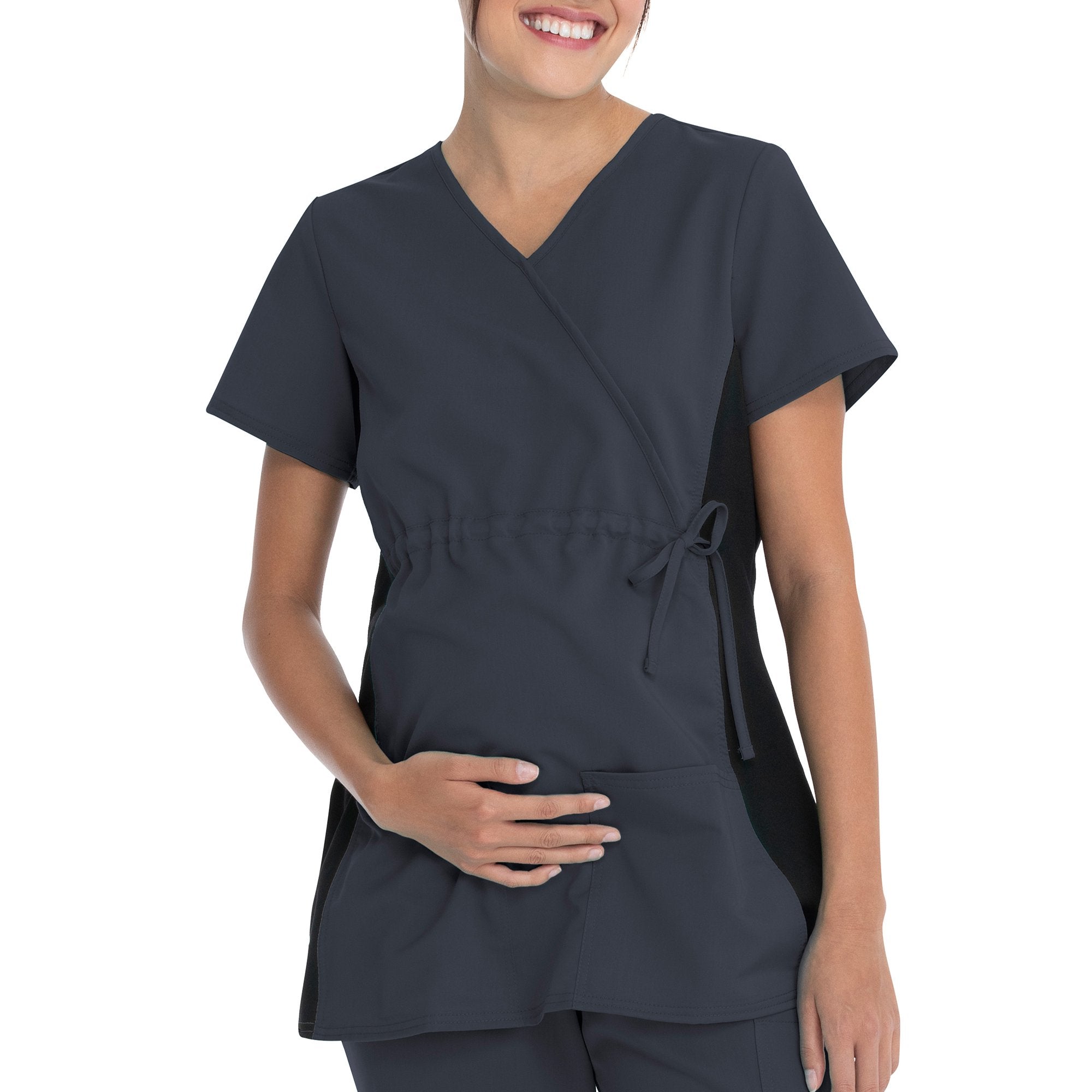 SIZE: L - Scrubstar Women's Rayon Ponte Side Panel Flexible Stretch Maternity Mock-Wrap Scrub Top WD800