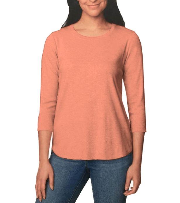 SIZE M - WOMENS KIRKLAND SIGNATURE 3/4 SLEEVE TEXTURED SLUB TEE SHIRT