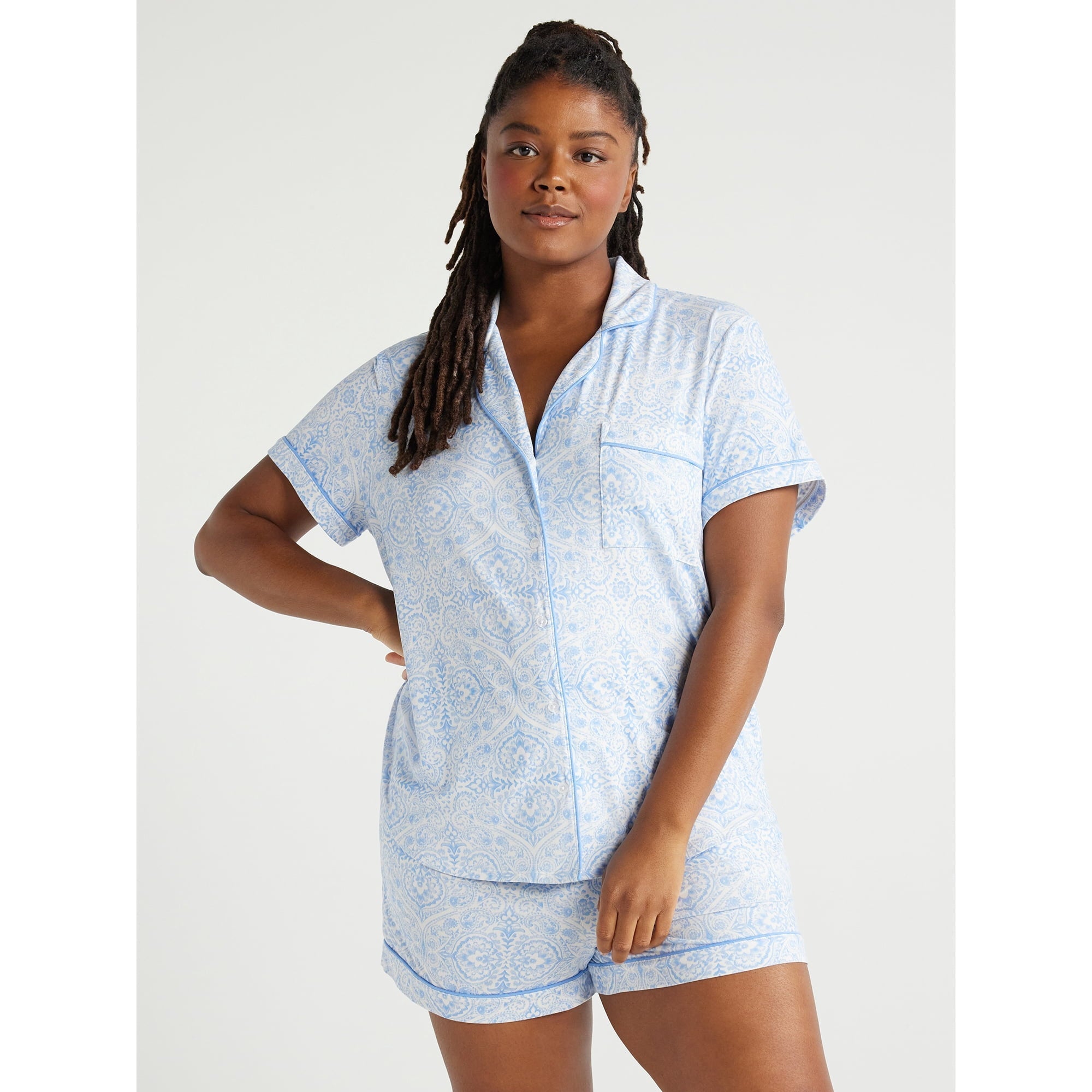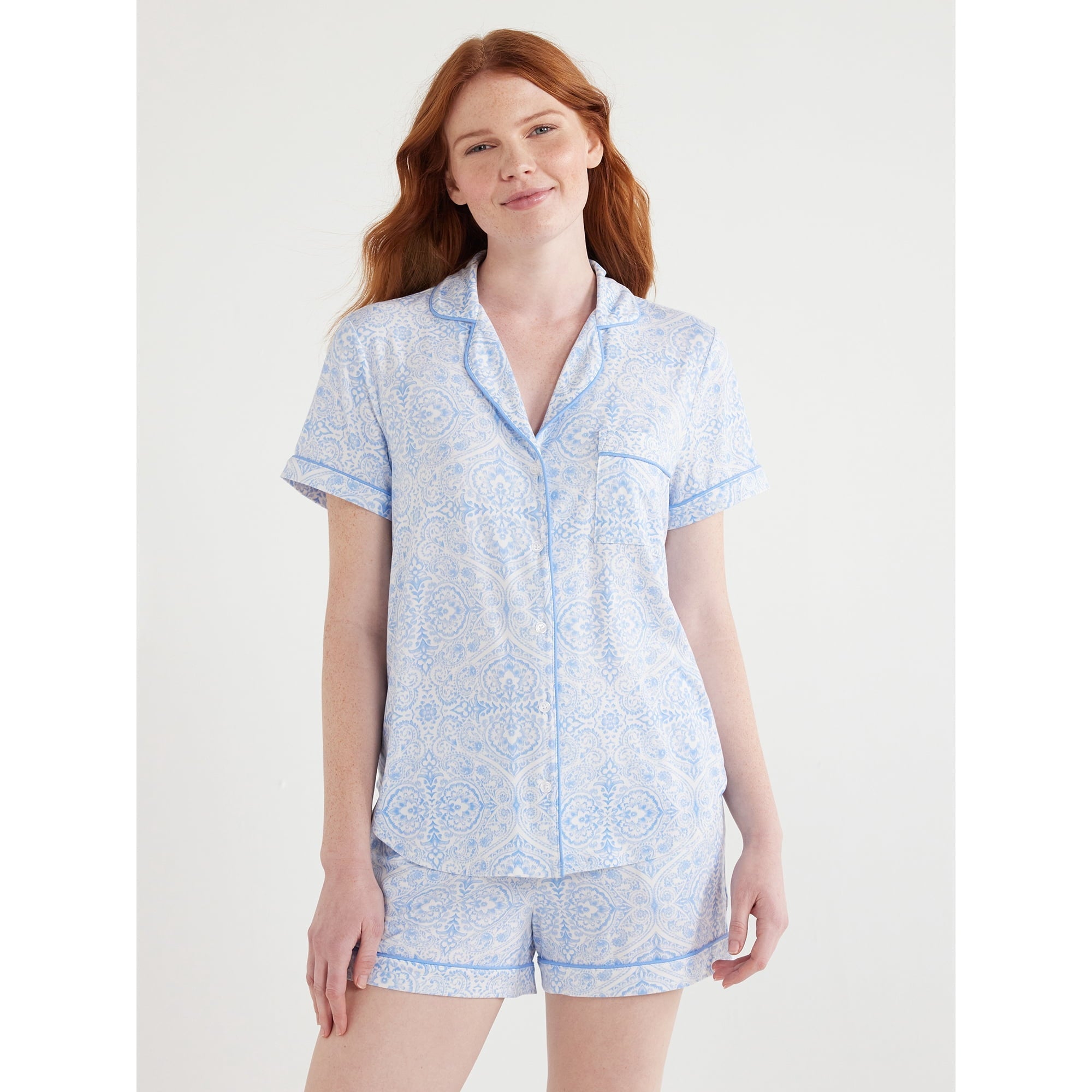 SIZE: M(8-10) - Joyspun Women's Knit Notch Collar Top and Shorts Pajama Set, 2-Piece,