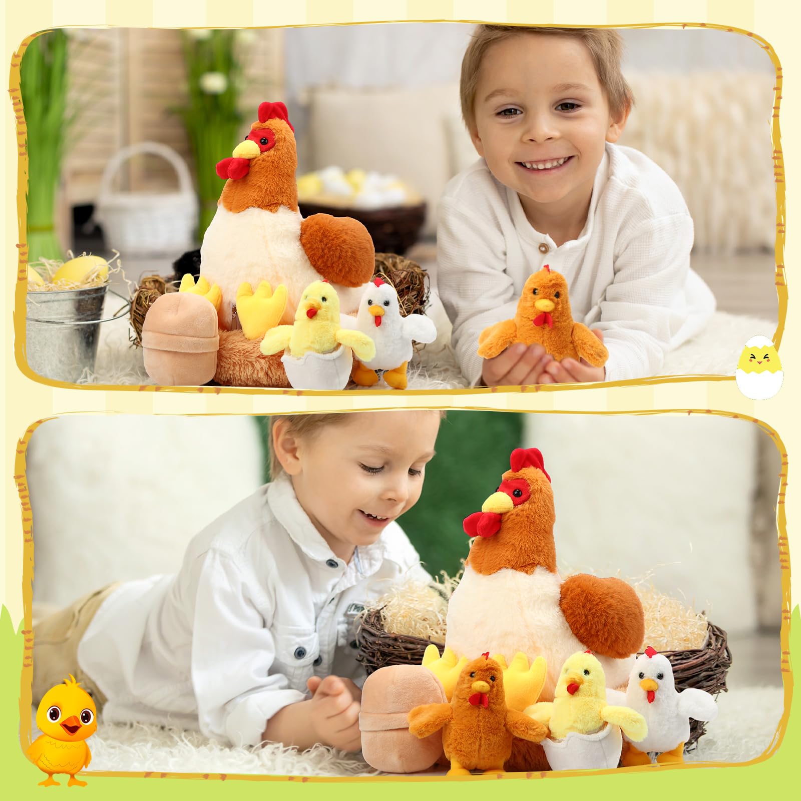 - Funny chicken dolls kit: you will receive 1 piece plush hen, 1 plush chicken coop, 1 plush chick with shell, 1 egg and 2 pieces plush , a total of 6 pieces, which are cute combinations for you to play and decorate