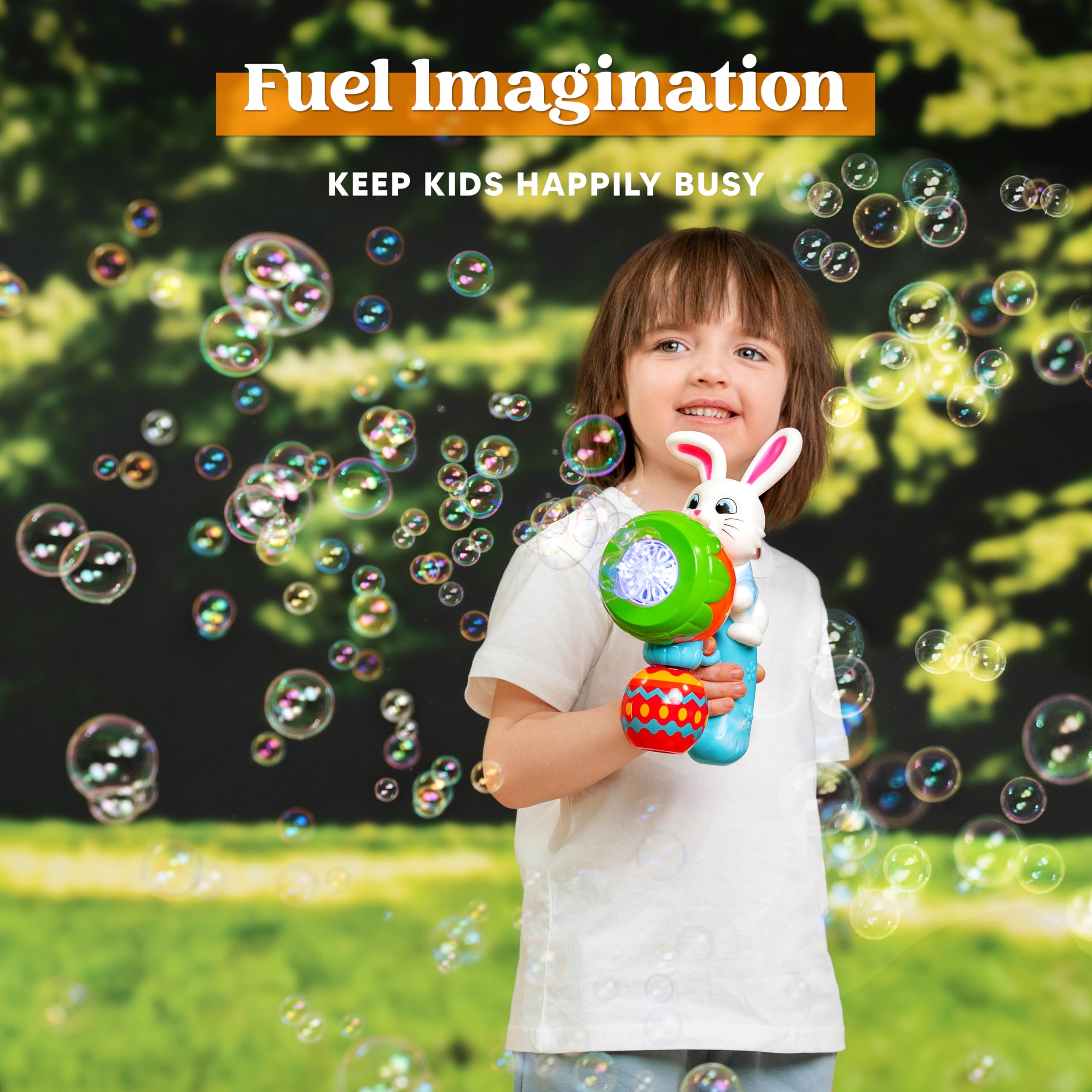 - CUTE EASTER BUNNY DESIGN: Adorable and festive bunny-shaped bubble gun adds a charming touch to your Easter celebrations. Kids will love chasing the small bubbles and the environment will be filled with laughter.
