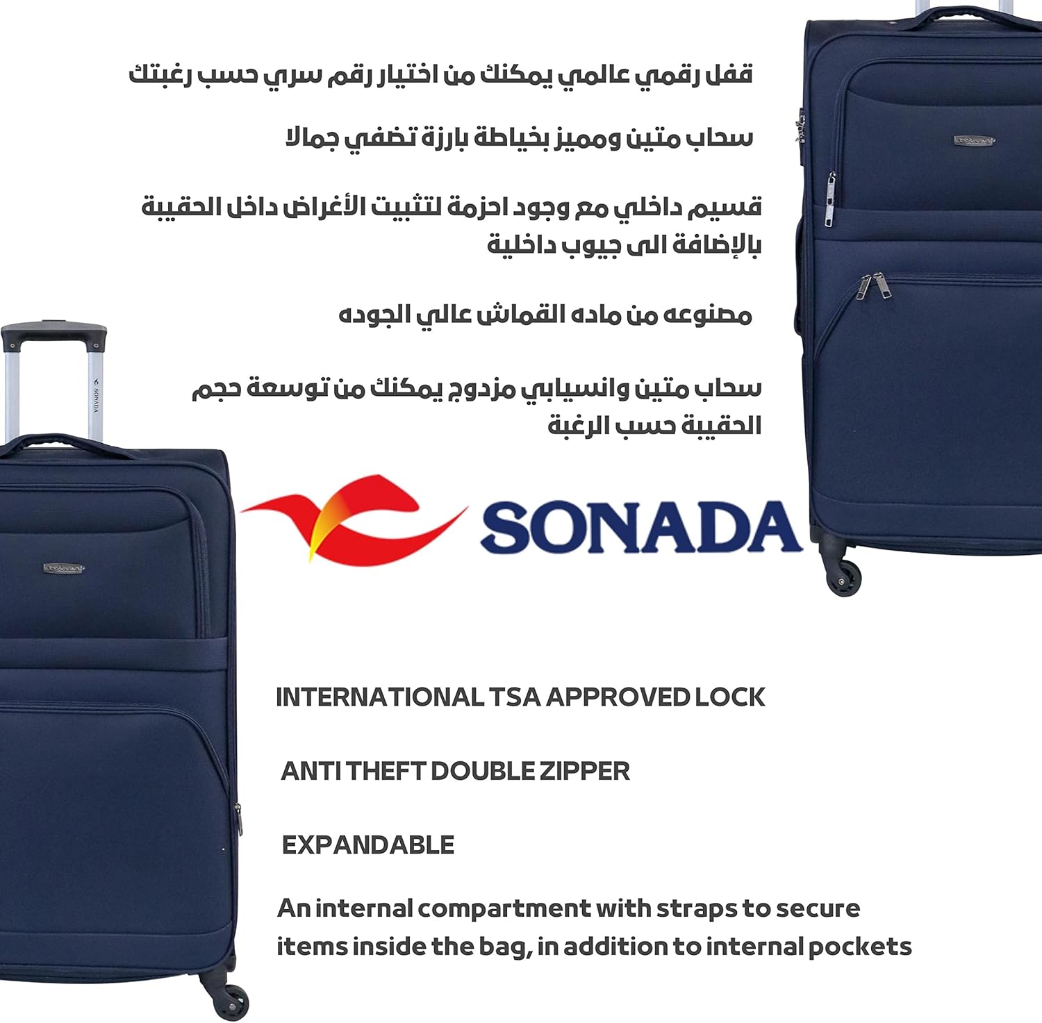 Sonada Lightweight Luggage 4 Wheels, ANTI Theft Digit Lock Softside Suitcase for travel (Set of 3, Navy)