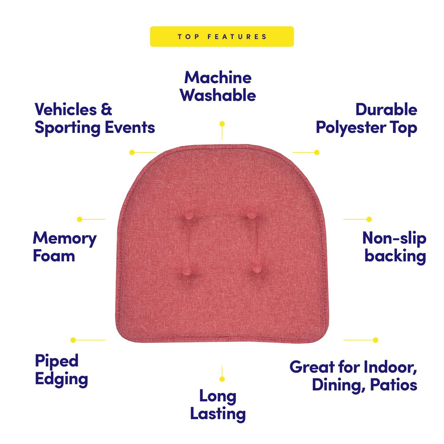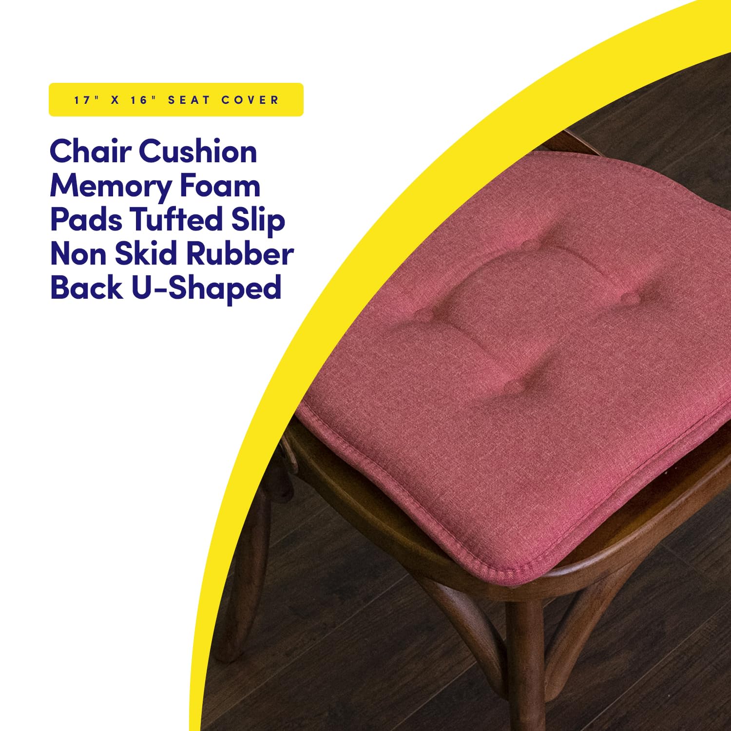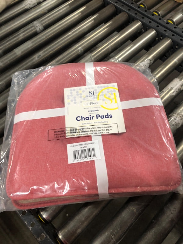 Sweet Home Collection Chair Cushion Memory Foam Pads Tufted Slip Non Skid Rubber Back U-Shaped 17" x 16" Seat Cover, 2 Count (Pack of 1), Peach