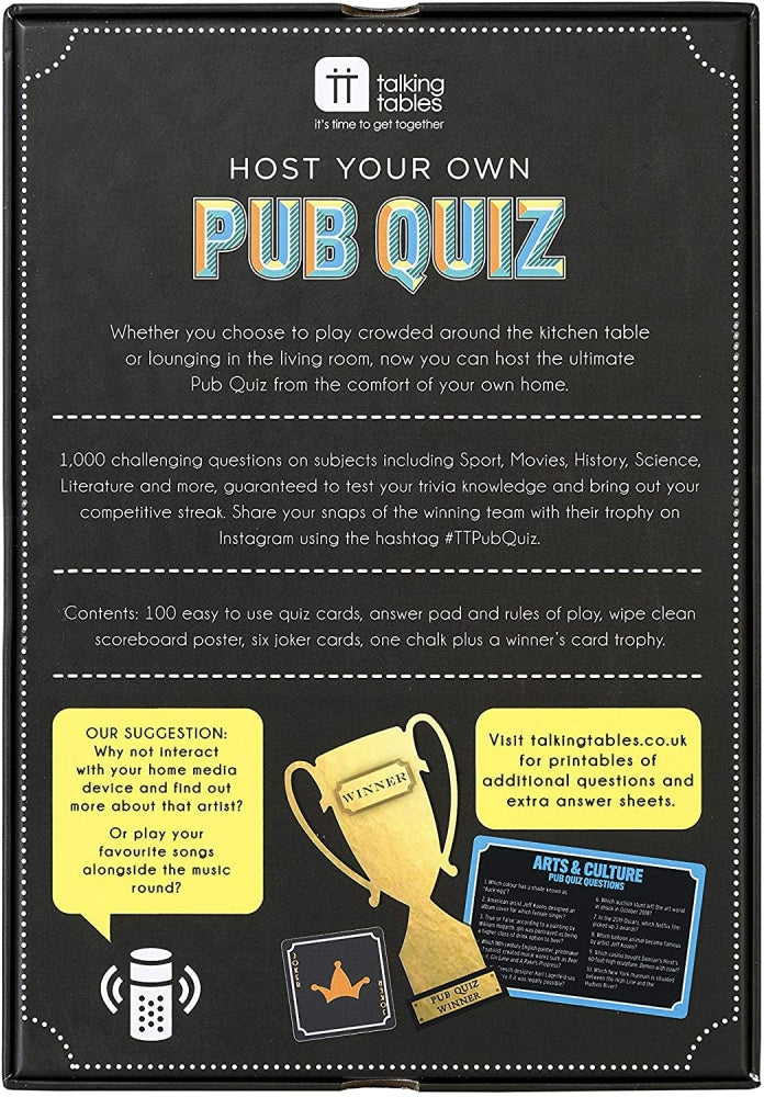 Talking Tables Pub Quiz, 1000 herausfordernde Fragen zu verschiedenen Themen, für Erwachsene Spielabend, Schwarz