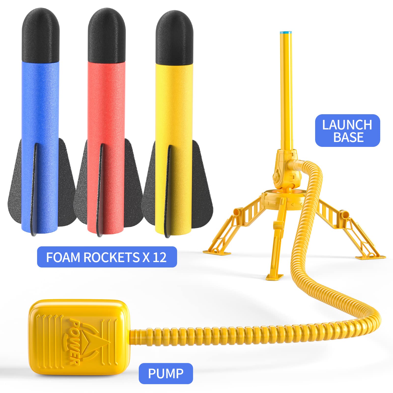 - Safe & Fun for Play - Our rocket launcher includes 12 foam rockets and an adjustable rocket launch stand. The foam rocket is safe and durable, making it a great choice for outdoor games.