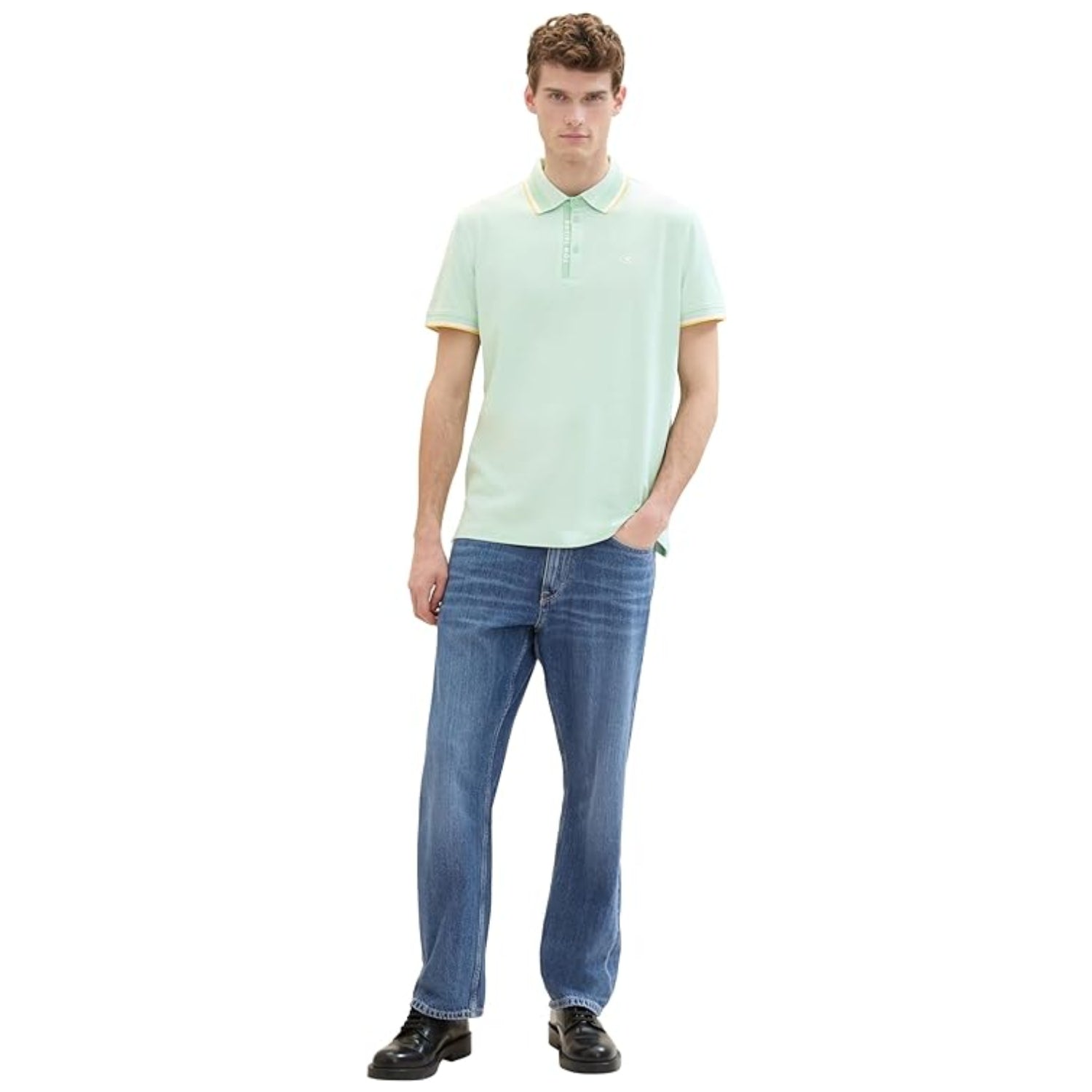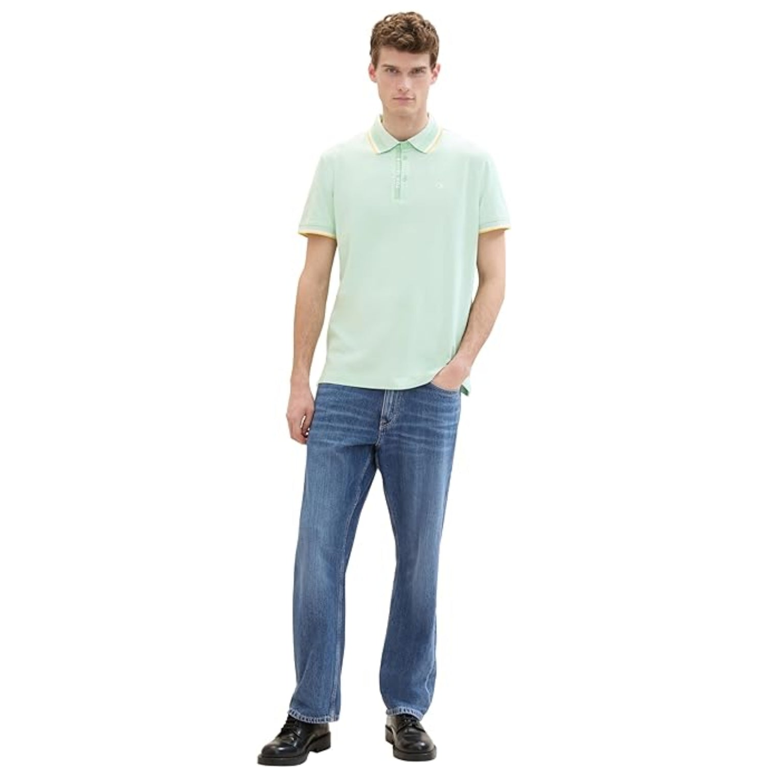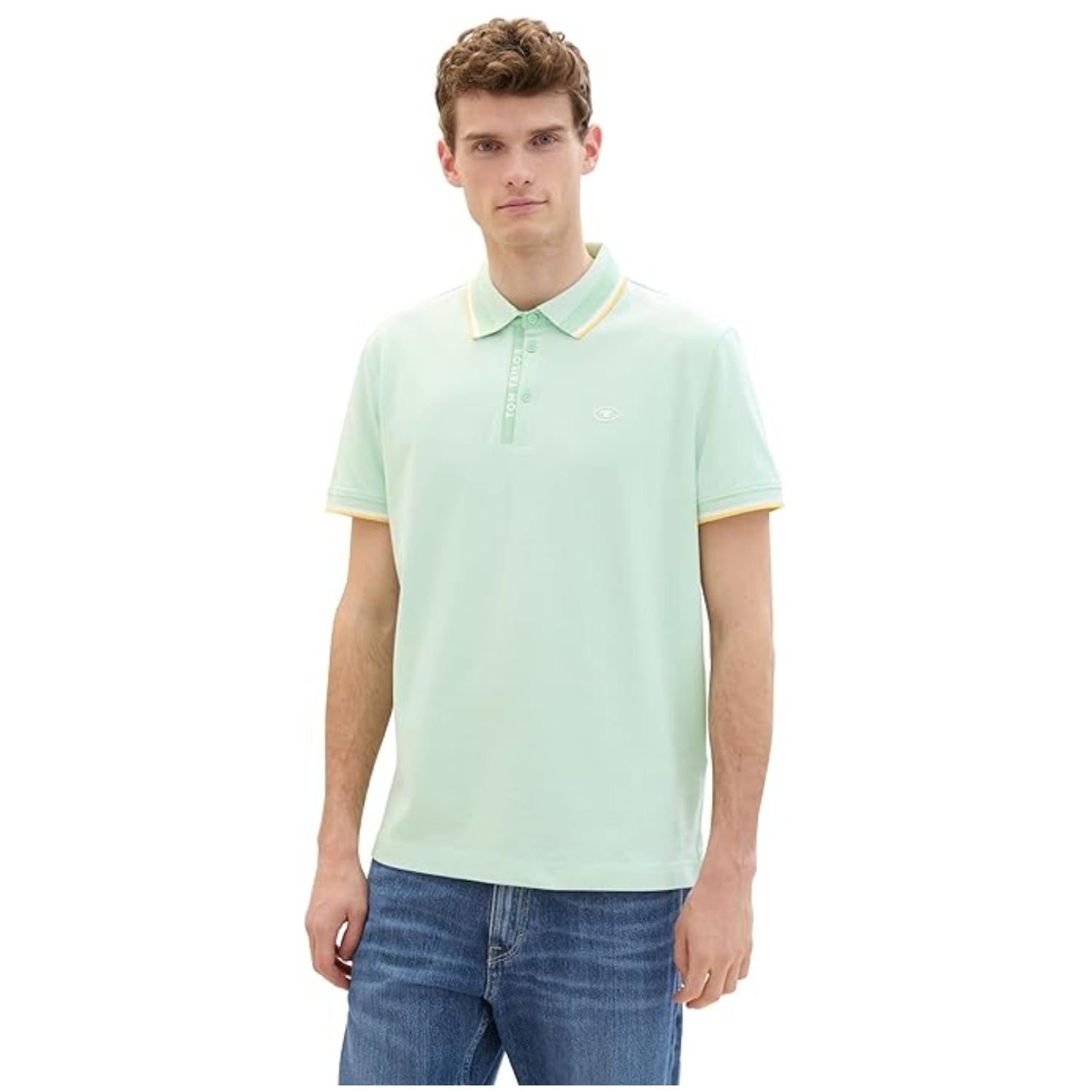 TOM TAILOR Men's Basic Pique Polo Shirt Mint White Two Tone