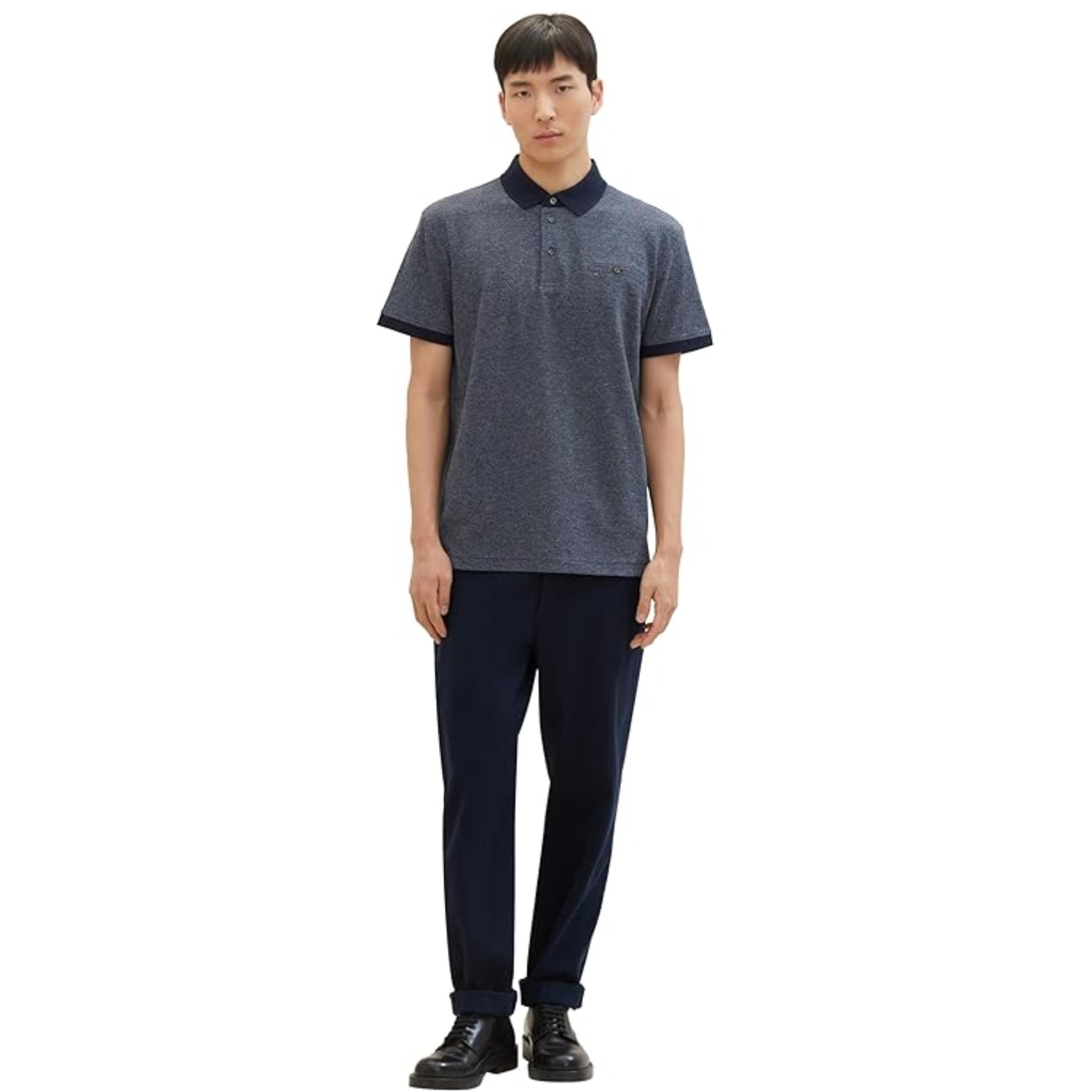 TOM TAILOR Men's Basic Pique Polo Shirt with Chest Pocket Navy Grindle Structure