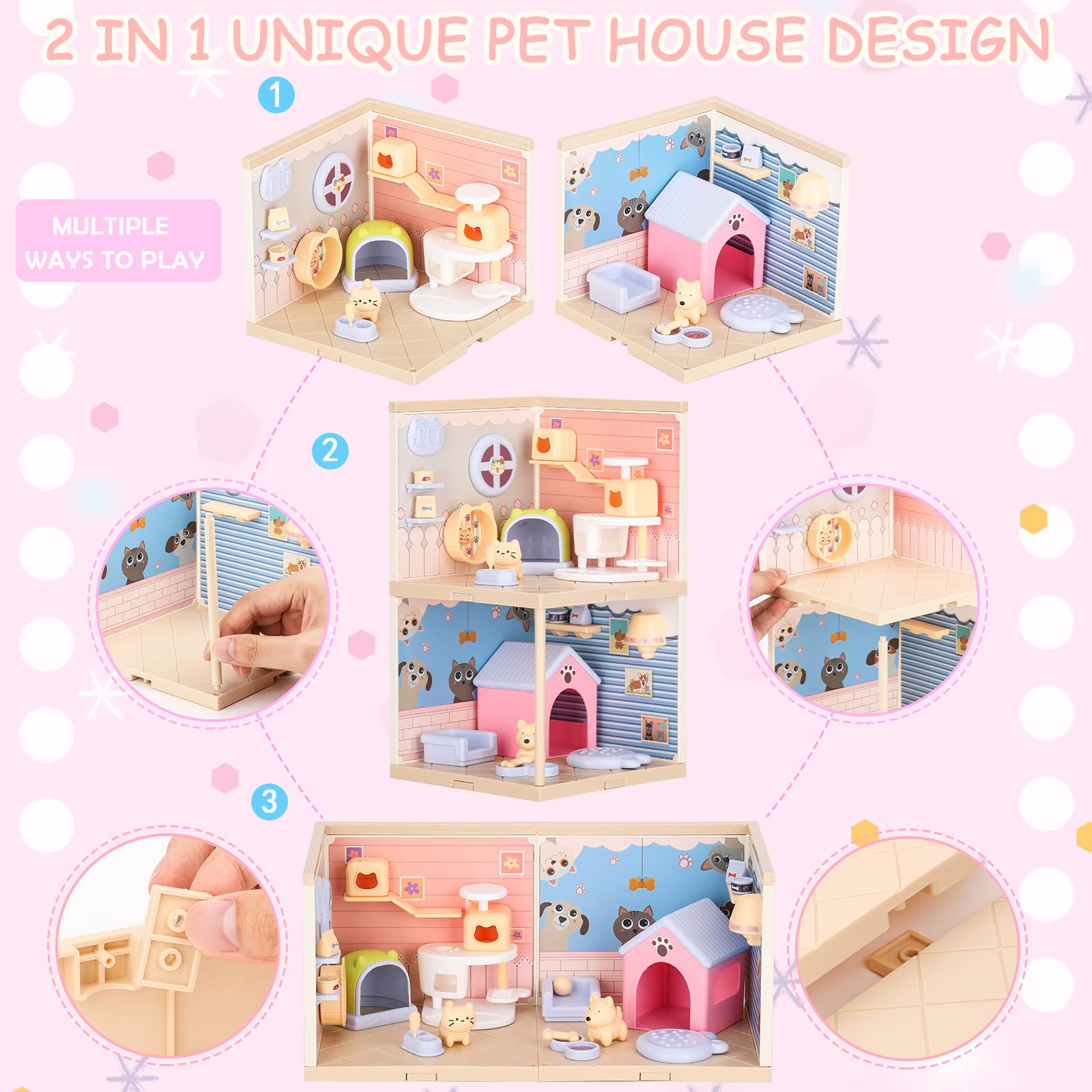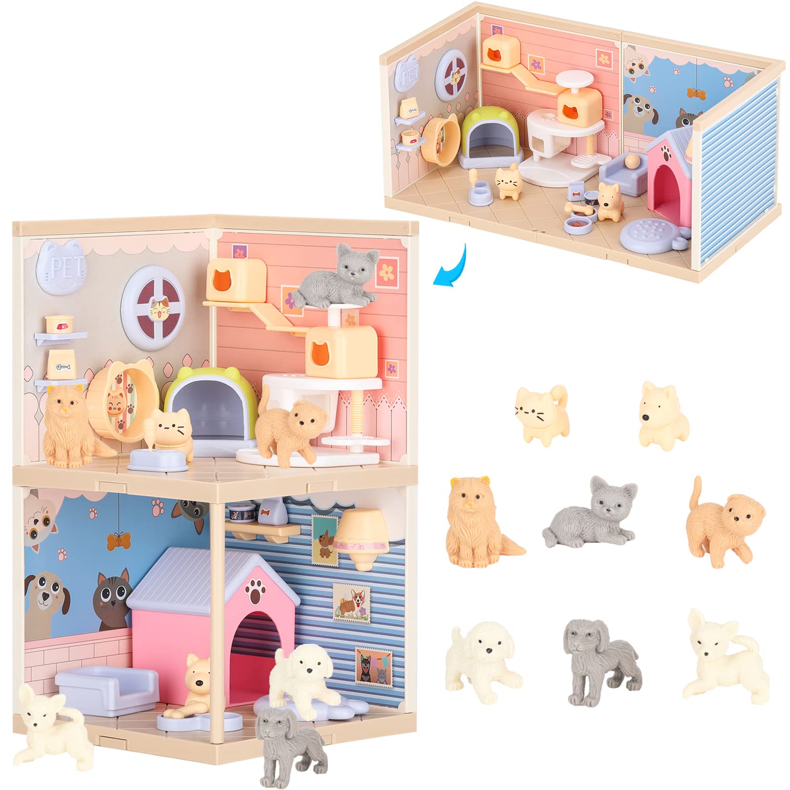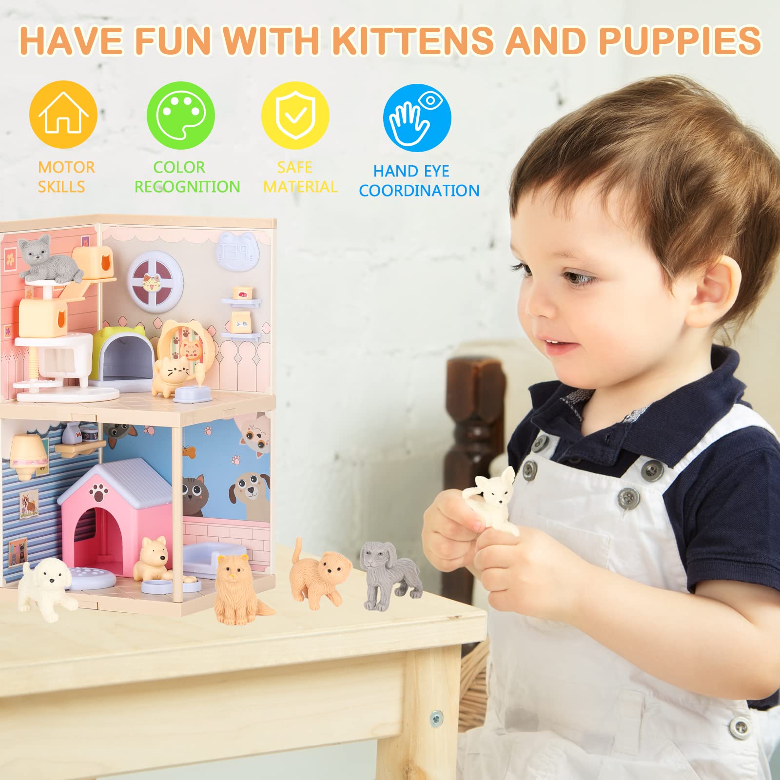 - FUN OF DIY: Pet house playsets help children to build DIY skills, cultivate their love for cats and dogs. Feed, play or watch them sleep, have a wonderful day with your lovely kittens or puppies. This animal figures playset will provide endless fun and enjoyment for young girls and boys alike