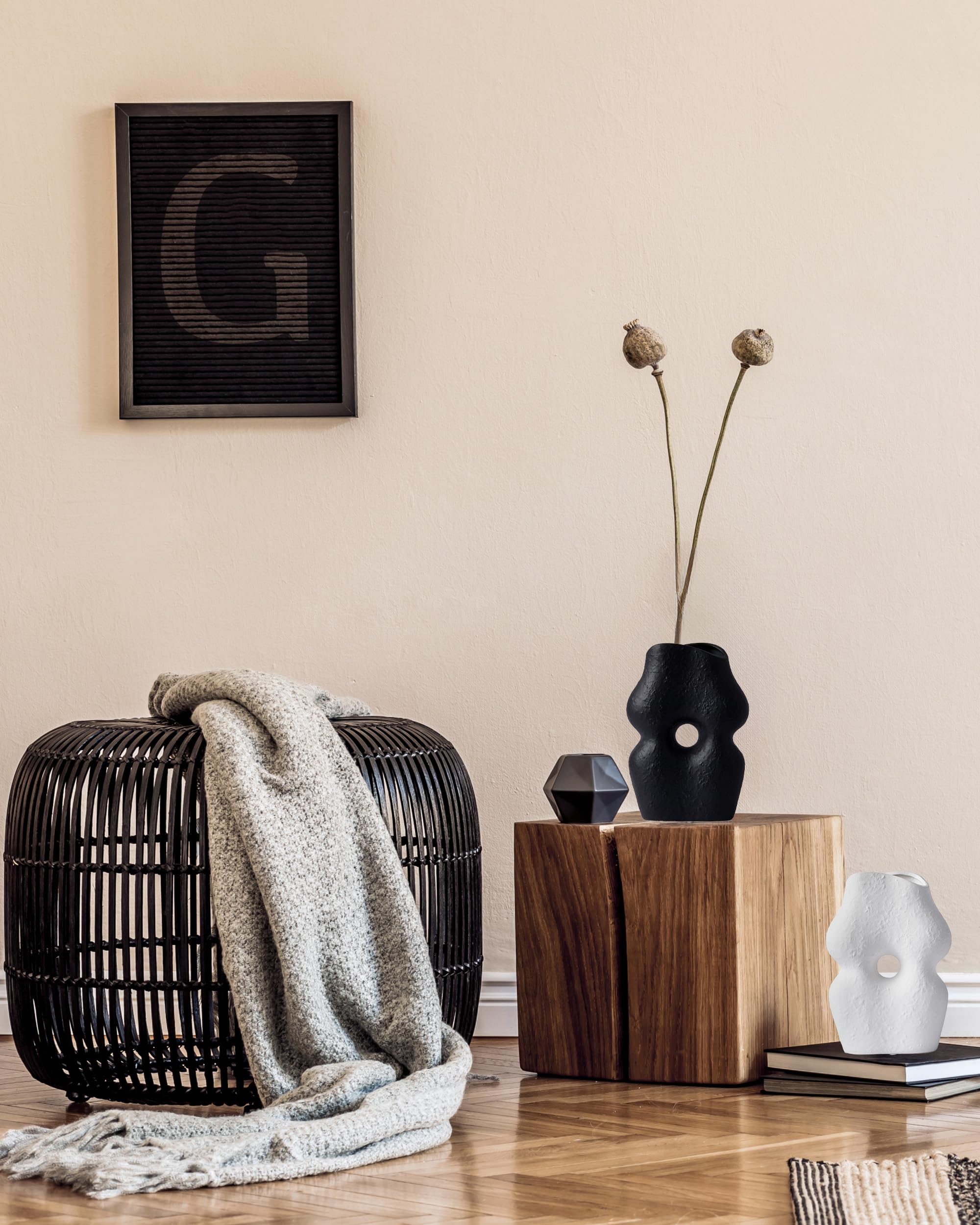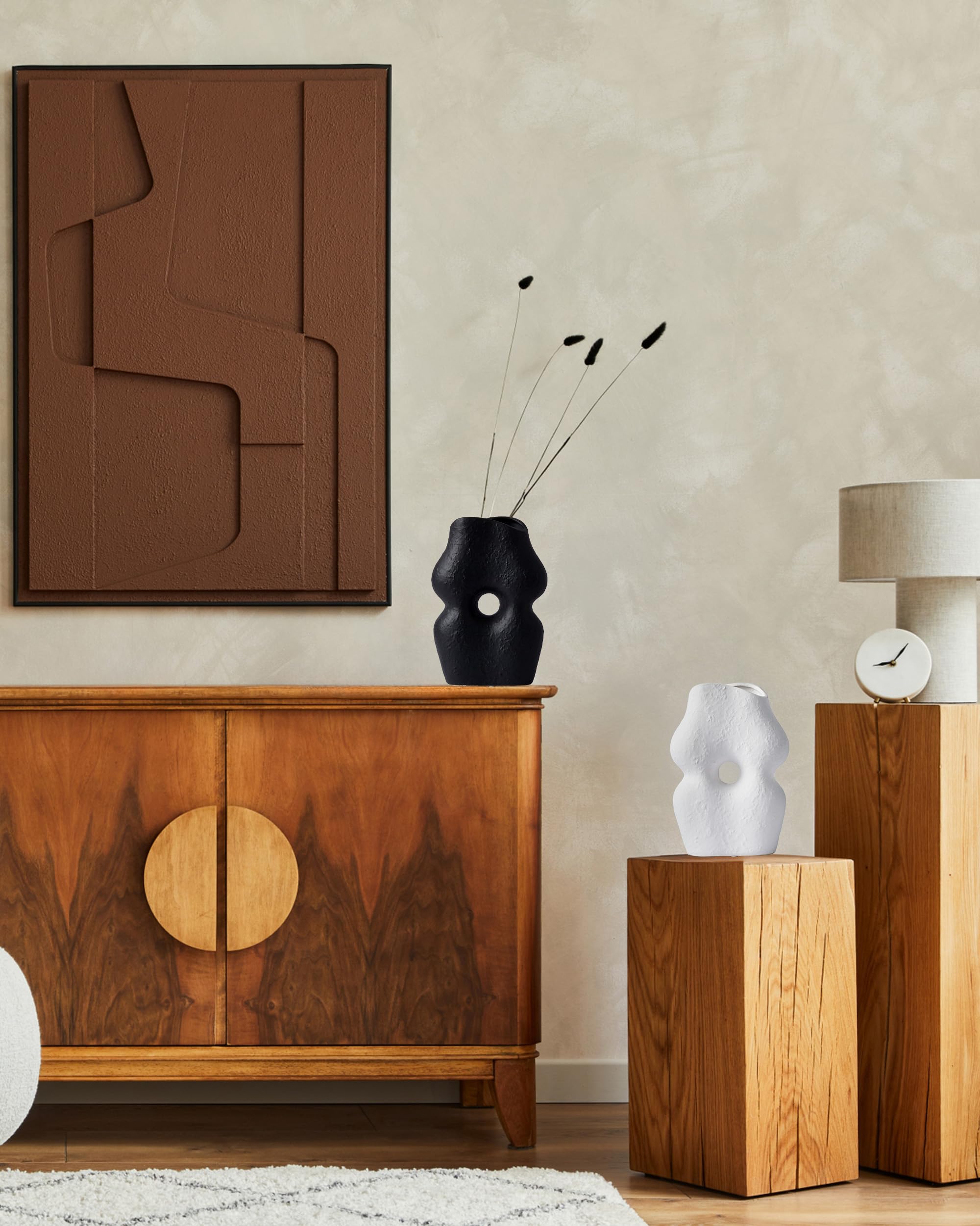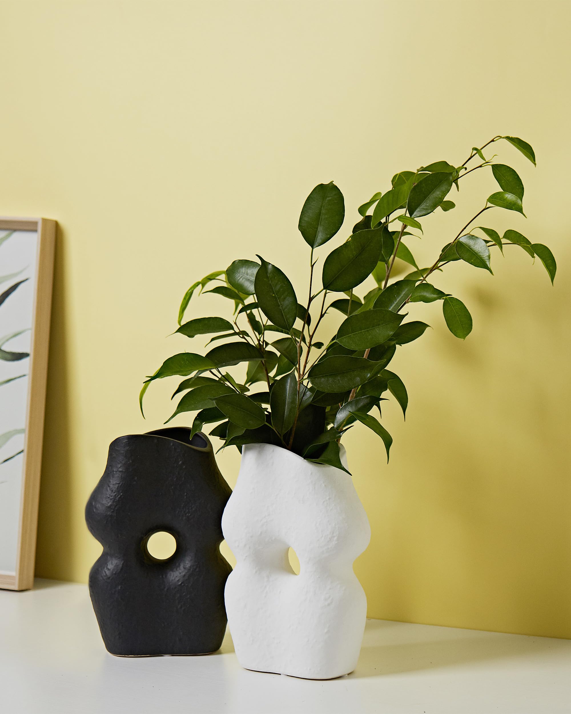 UPWOIGH White Black Ceramic Vase Set of 2,Modern Boho Flower Vase Home Décor