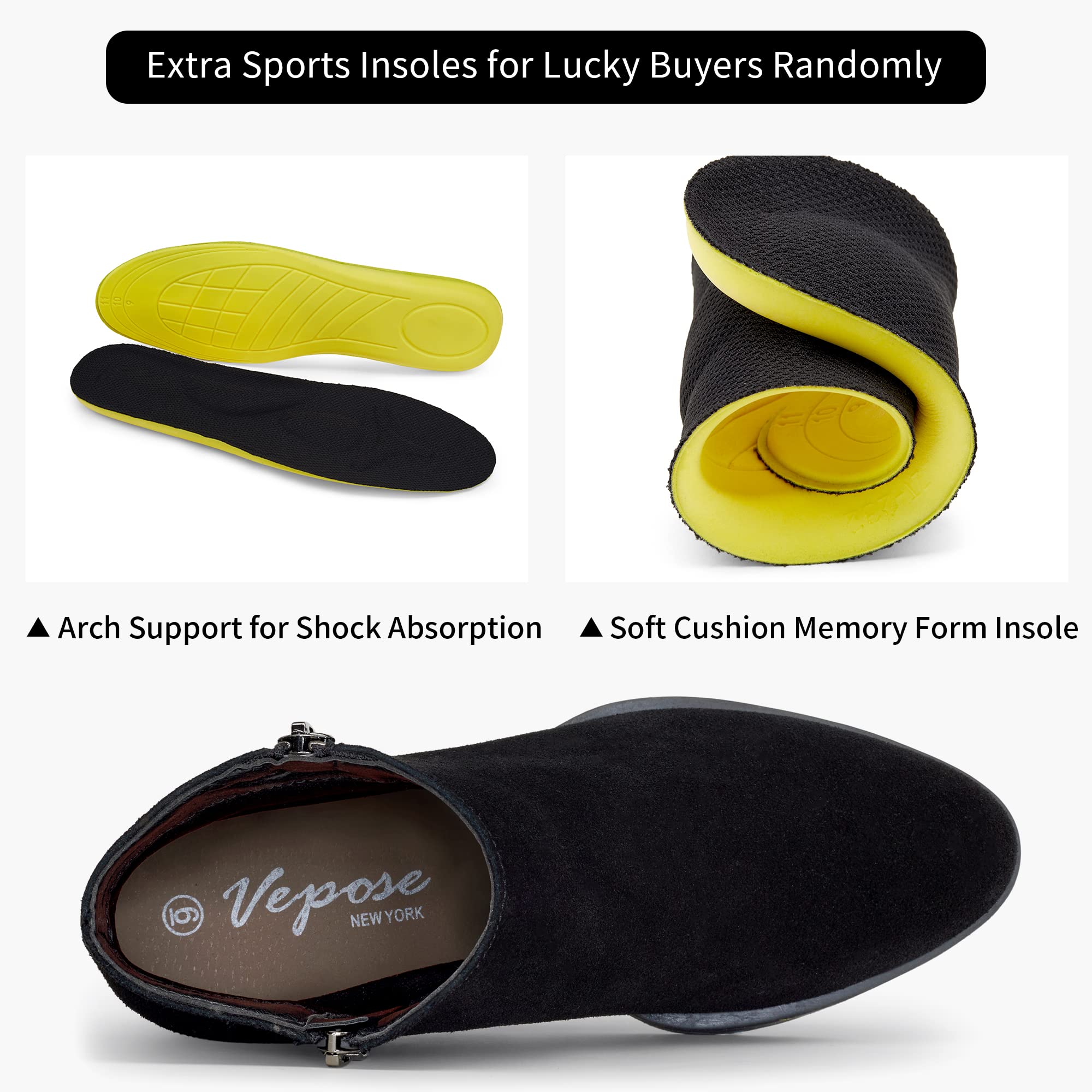Size: 39 - Vepose Women's 9002 Suede Leather Low Booties, Ankle Boots, Black, Low Heel Elegant Boot(CJY9002 Black)