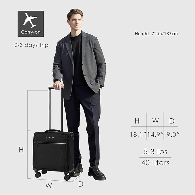 VERAGE Carry on business luggage, Rolling Laptop Suitcase for Travel and Business Travel, TAS Approved, (Toledo GM21002, Black)