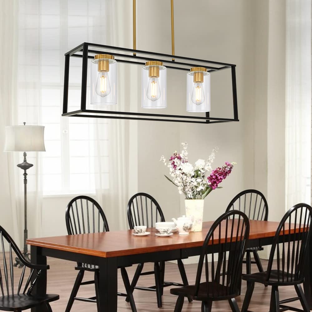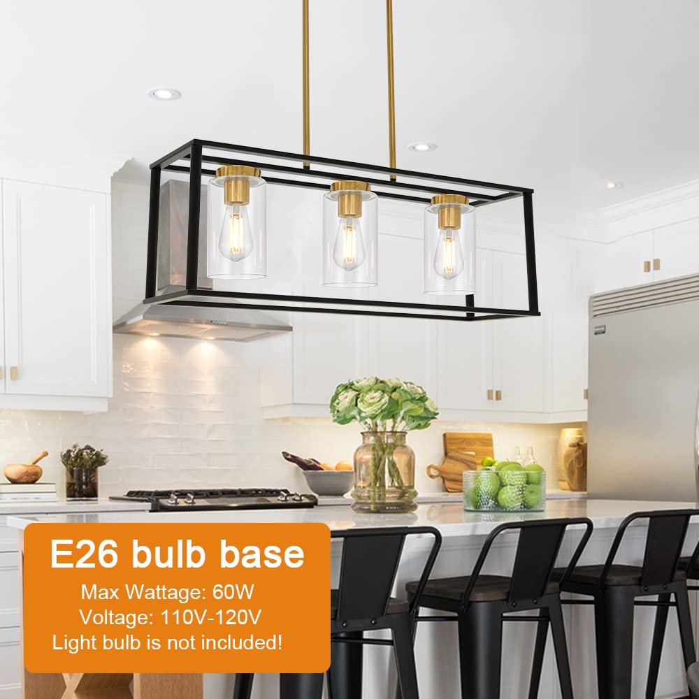 - ☀Contemporary Design: This simple linear island pendant lighting with clear glass shade, unique black and brushed brass color designed to illuminate the heart of your kitchen, dining room or farm styled places.