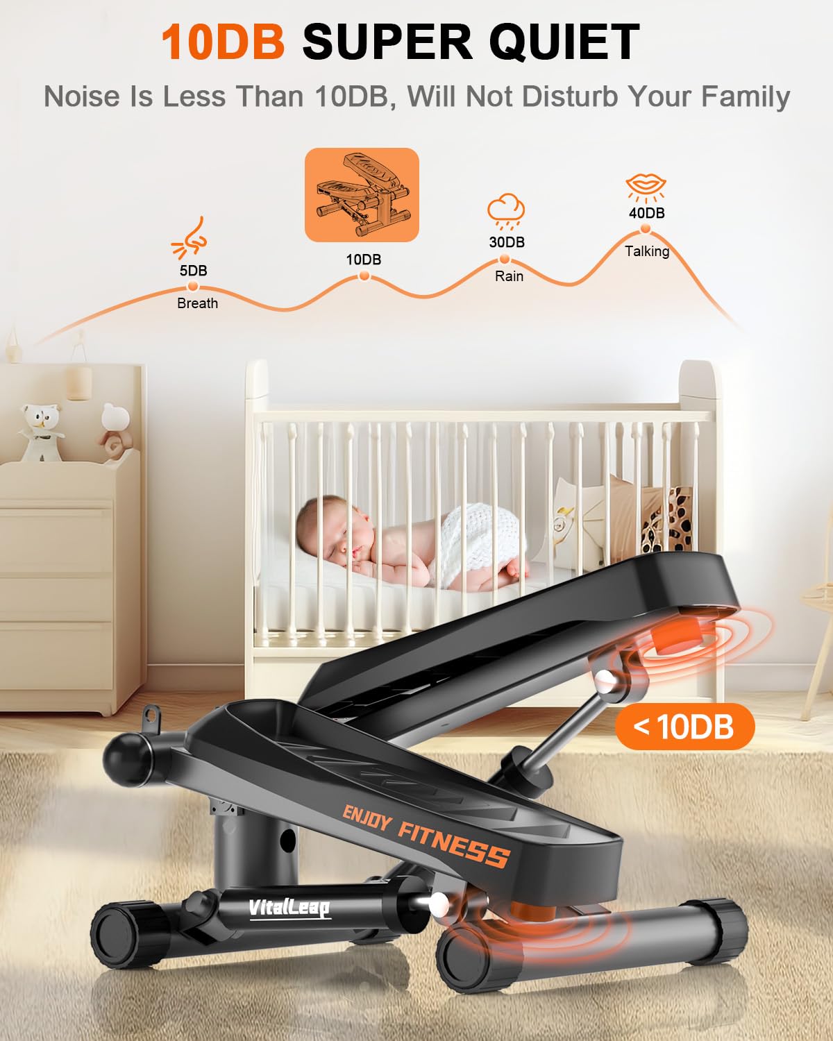 VitalLeap Steppers for Exercise, 16-Level Adjustable Resistance Stair Steppers with Arm Training Bands for Home Fitness