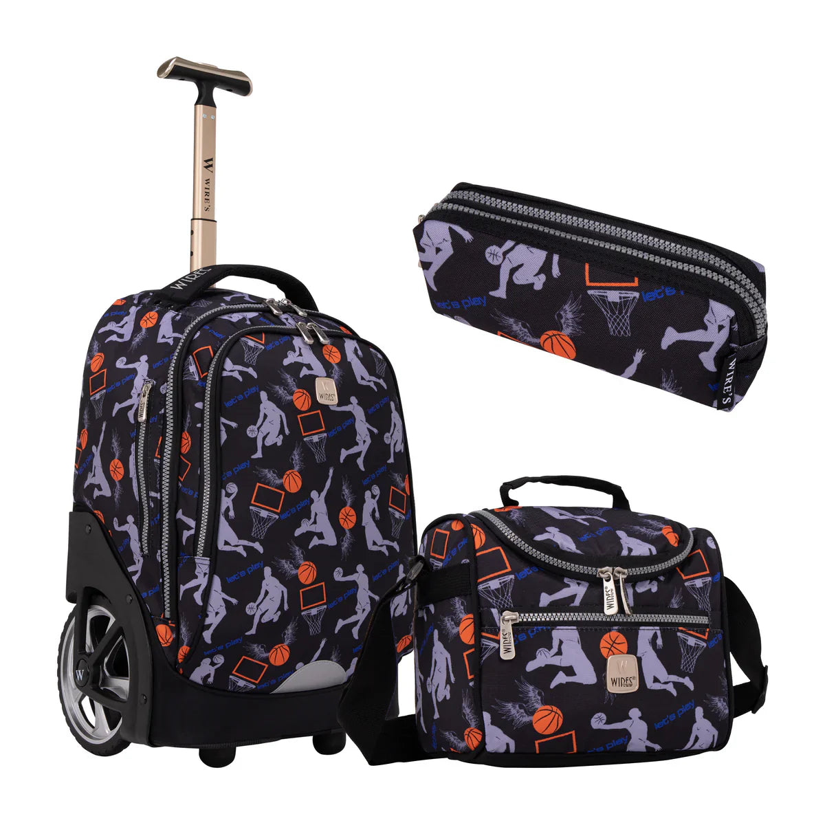 Wires Basketball Wires Big Wheel School Bag Trolley Set of 3 (Lunch Bag & Pencil Case) - W24536