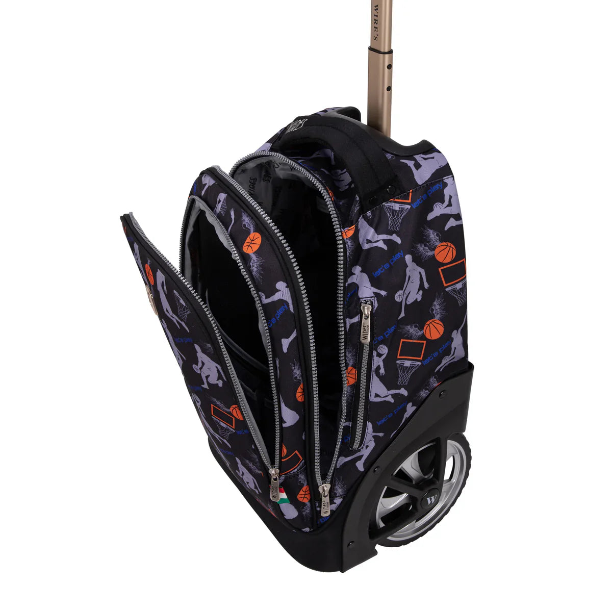 The Wires Basketball Wires Big Wheel School Bag Trolley Set of 3 - W24536 is ideal for students who need a functional, durable, and sporty way to carry their school supplies. Whether rolling it along or wearing it as a backpack, this set offers convenience, comfort, and style for every school day.