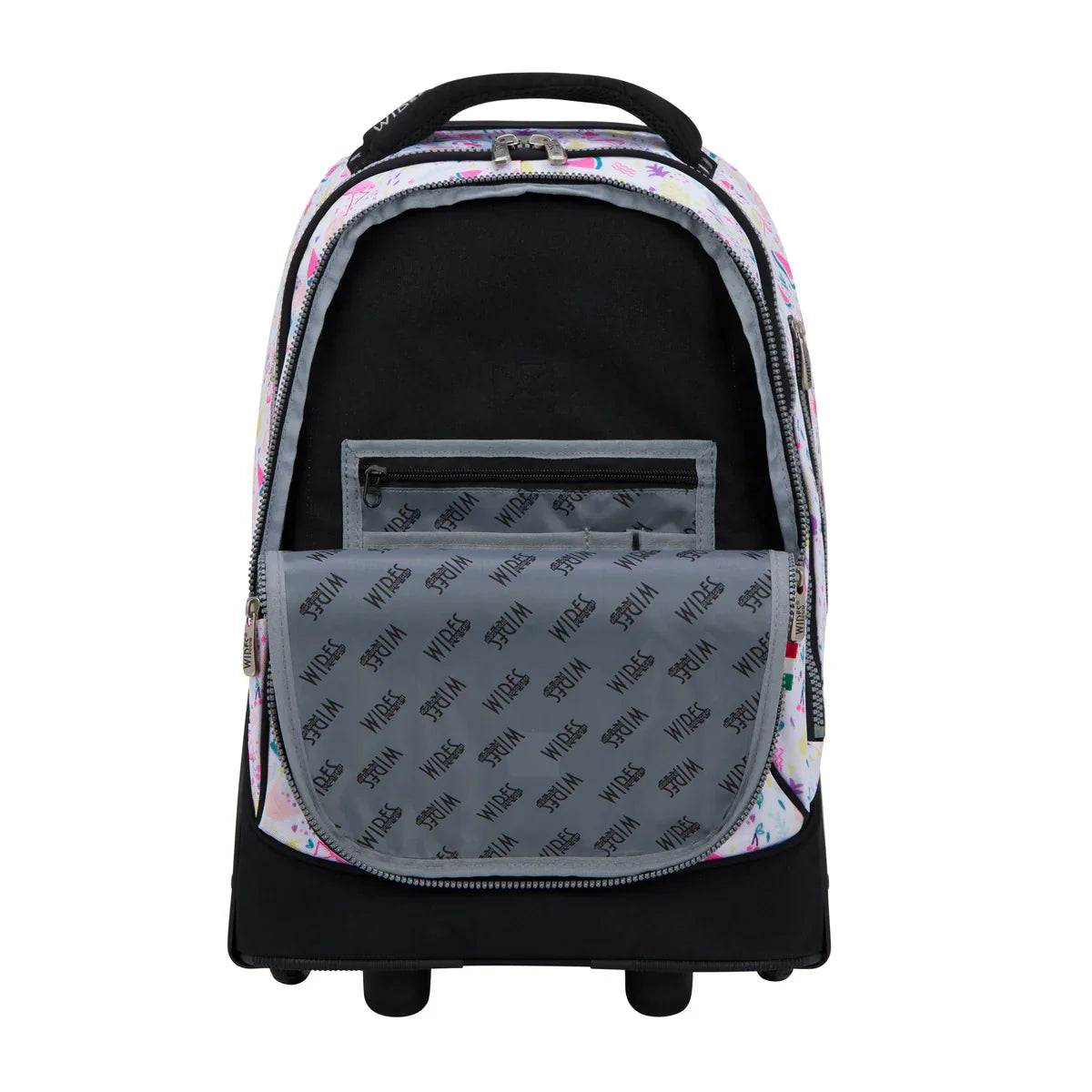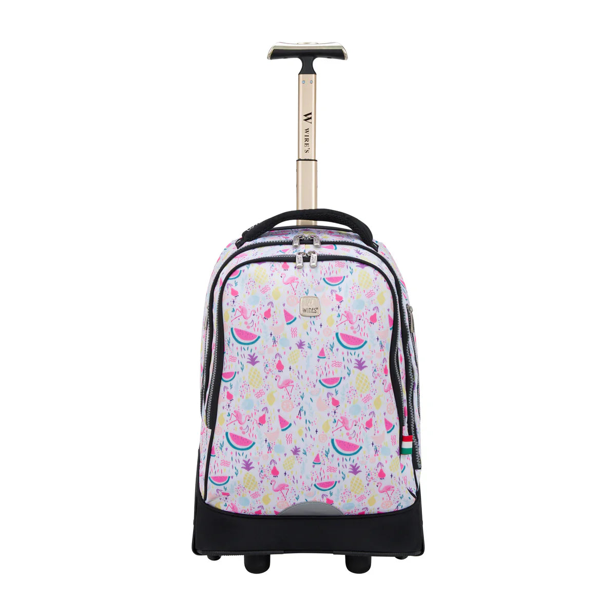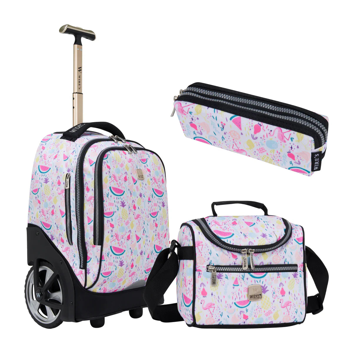 The Wires Bright Tropical Wires Big Wheel School Bag Trolley Set of 3 - W24514 is perfect for students who need a reliable, stylish, and functional way to carry their school supplies. Whether rolling it along or wearing it as a backpack, this set offers convenience, comfort, and a splash of color for every school day.