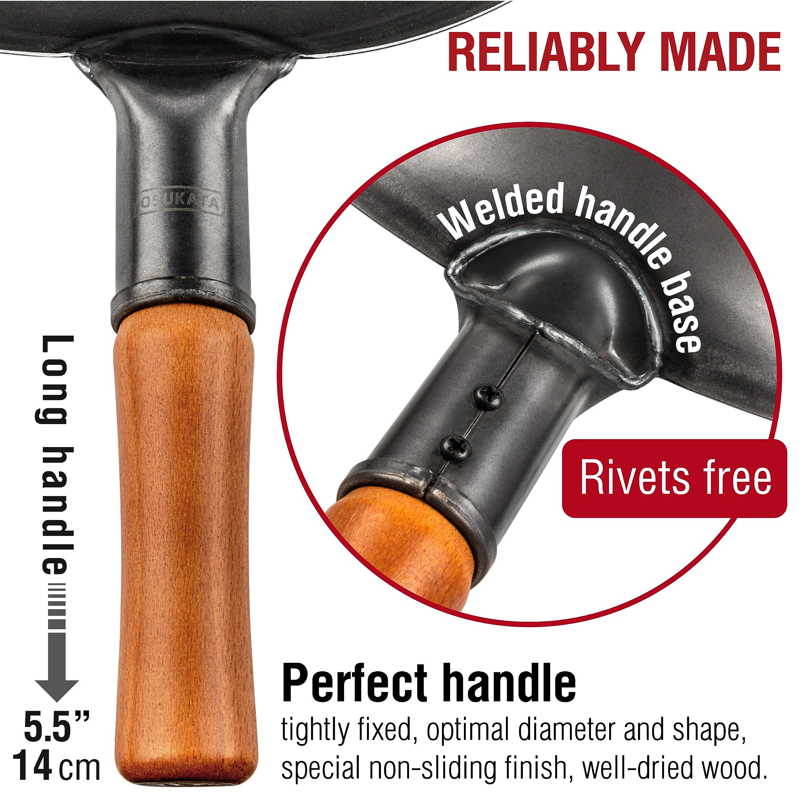 EVEN HEATING and OPTIMAL HEAT RETENTION: Our wok is heavy-duty black carbon steel. This Chinese wok pan ensures ideal heat retention and consistently even heating, both important for locking in flavors and juices.